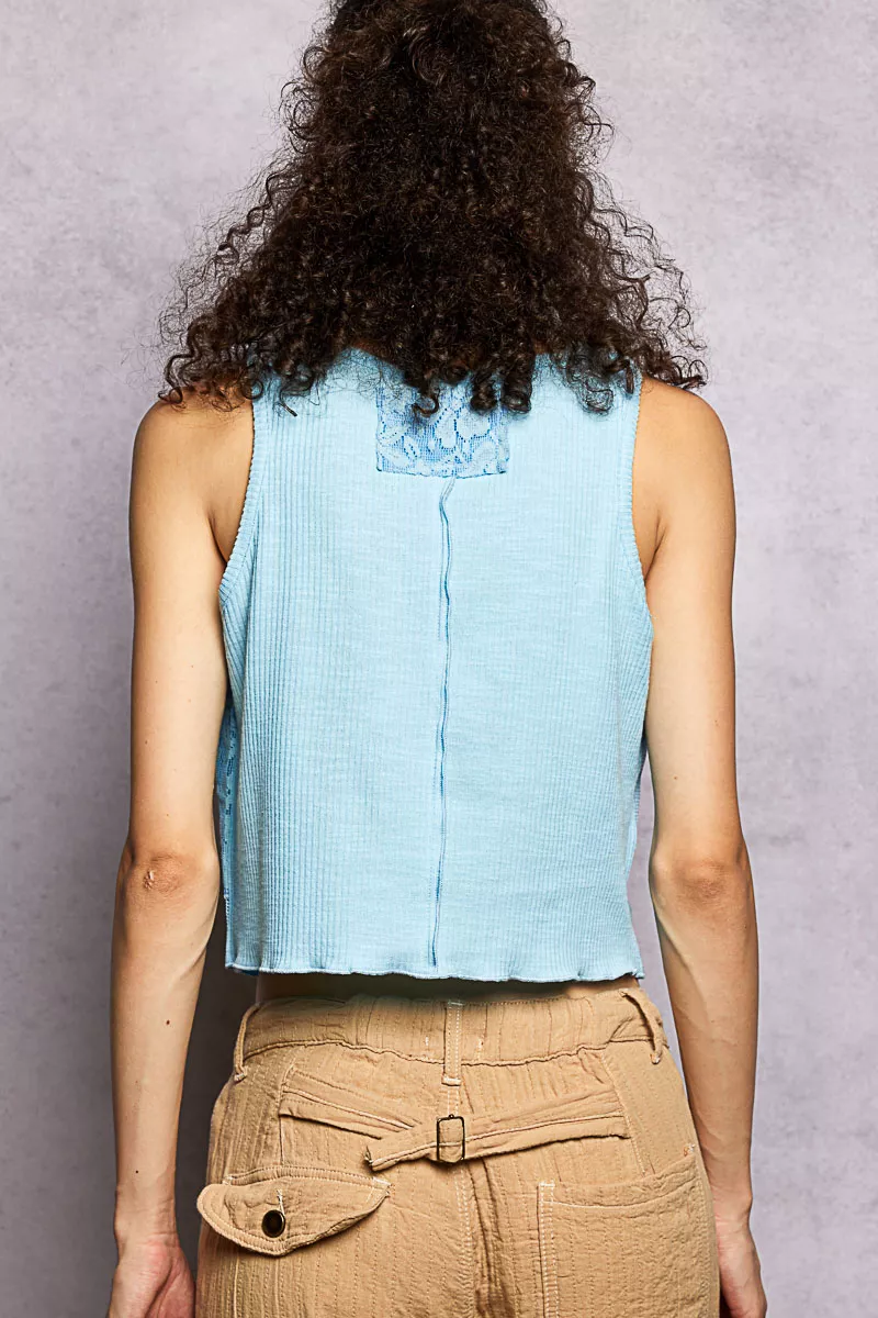 POL Ribbed Round Neck Cropped Tank with Lace Detail