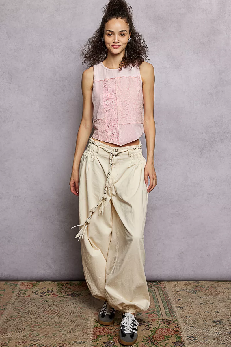 POL Ribbed Round Neck Cropped Tank with Lace Detail