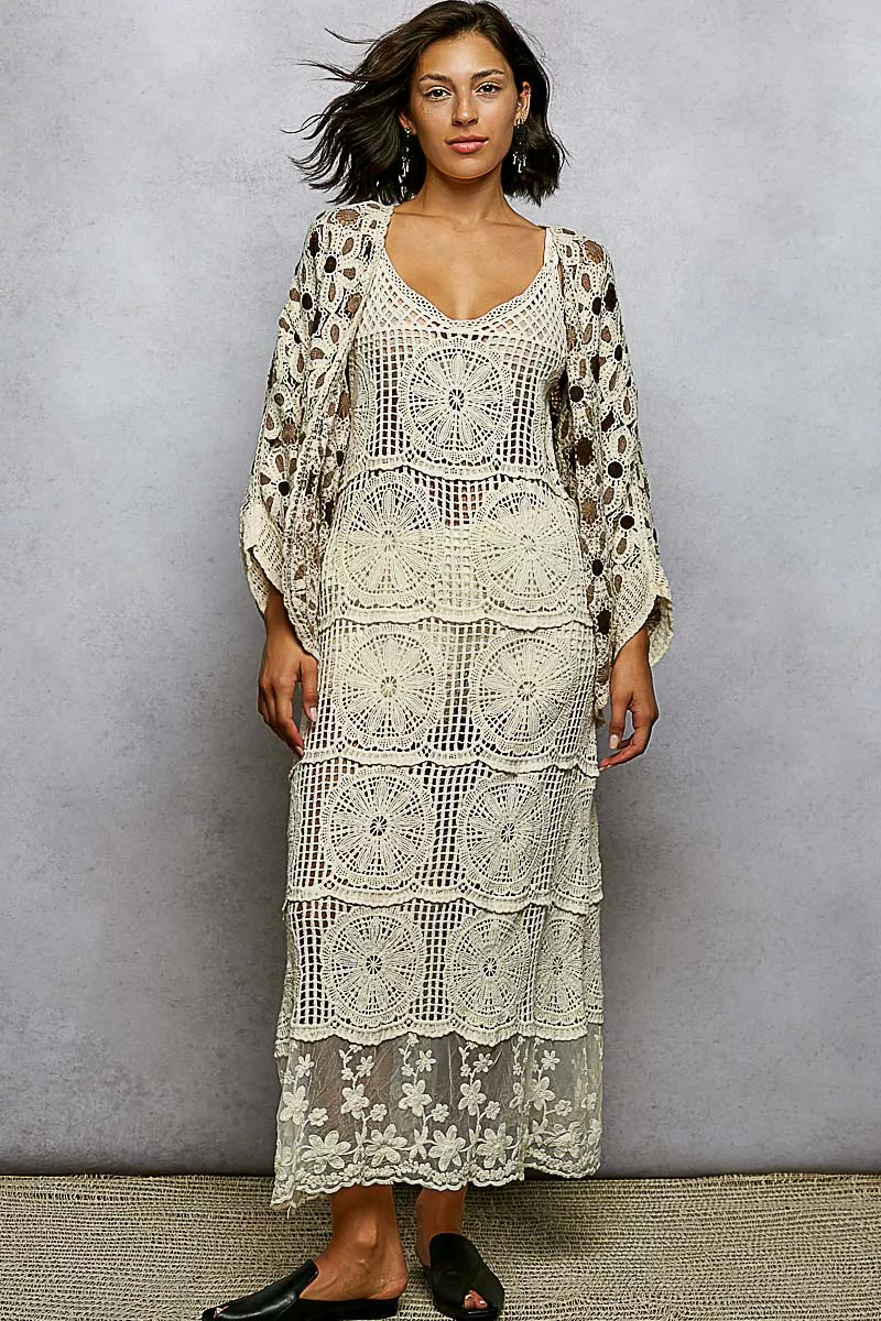 POL Open Front Floral Pattern Crochet Cardigan