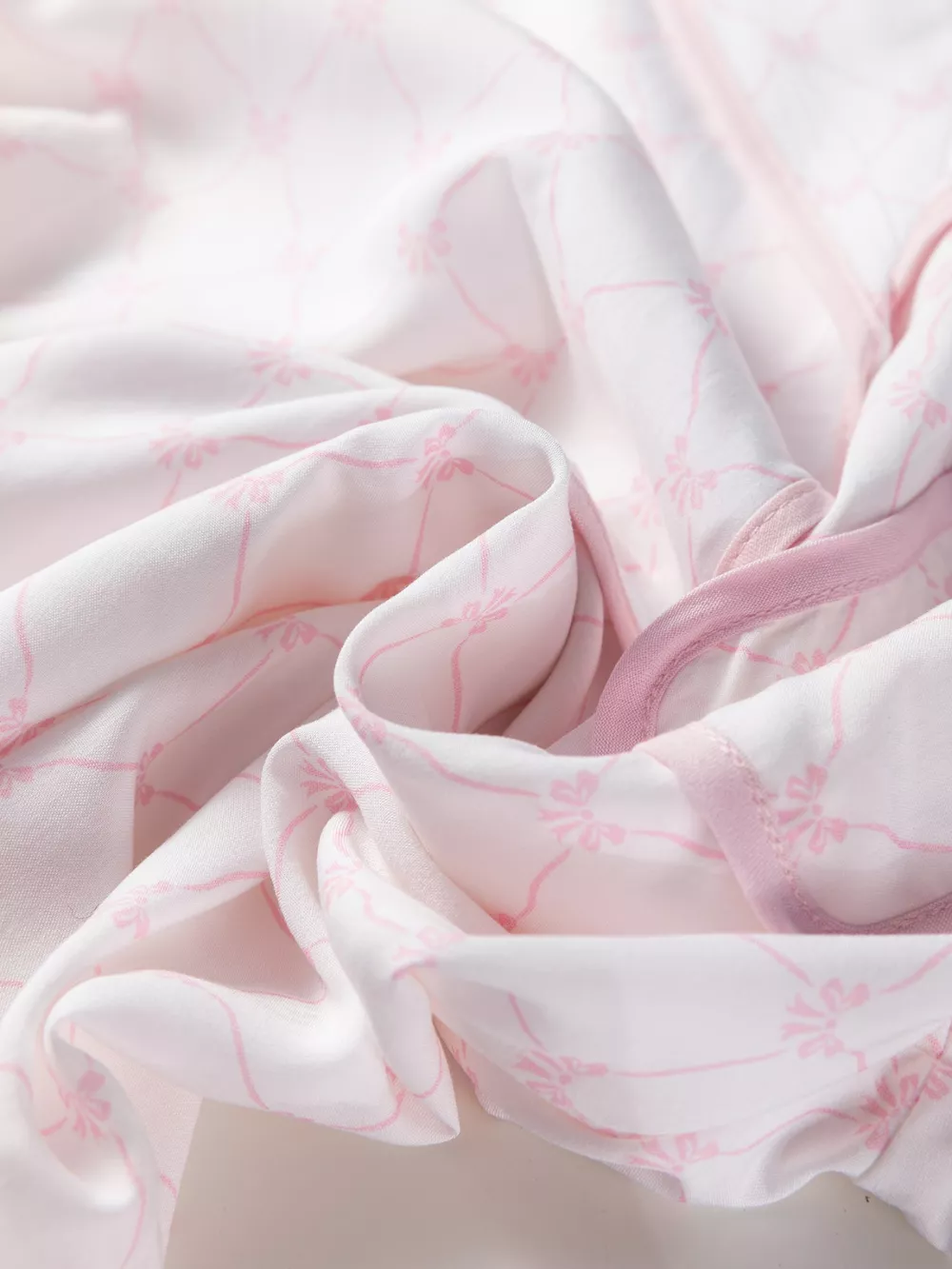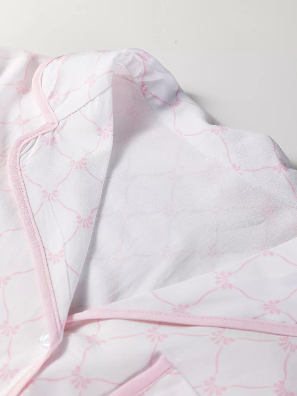 Bow Lattice Print Bow Ties 2pcs Pajama Set
