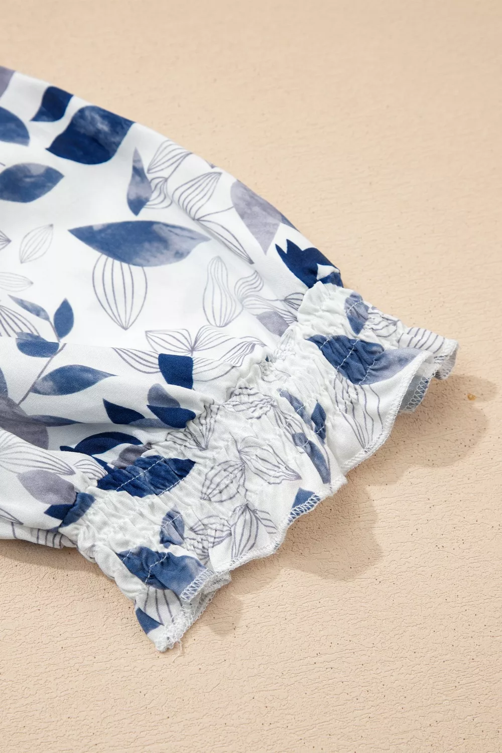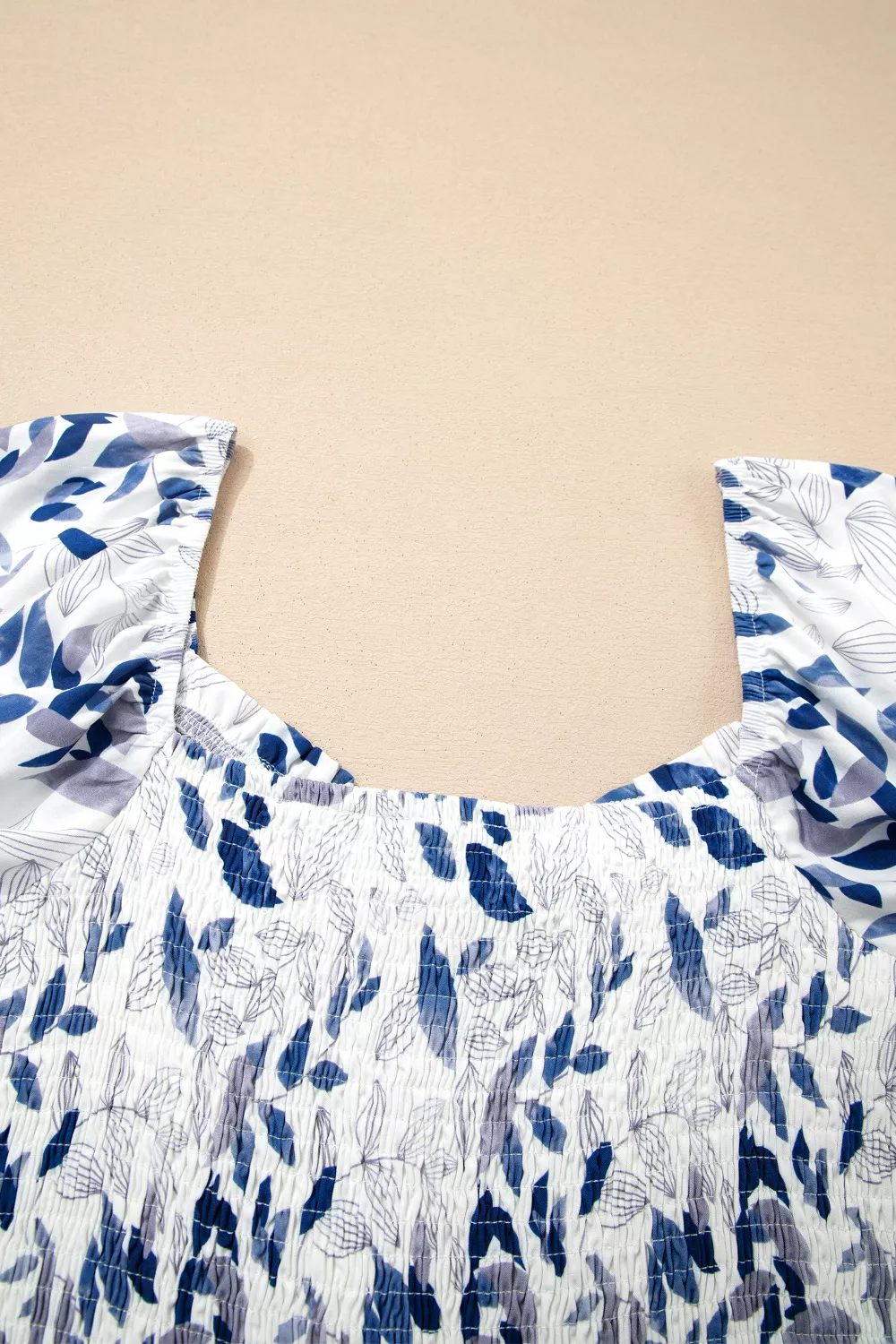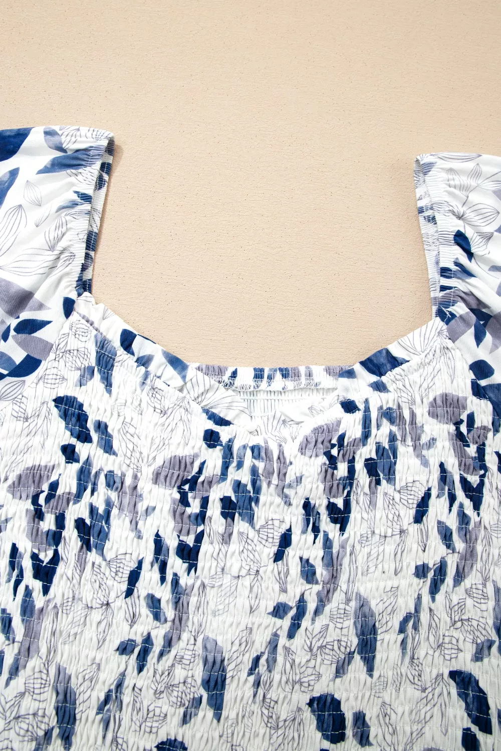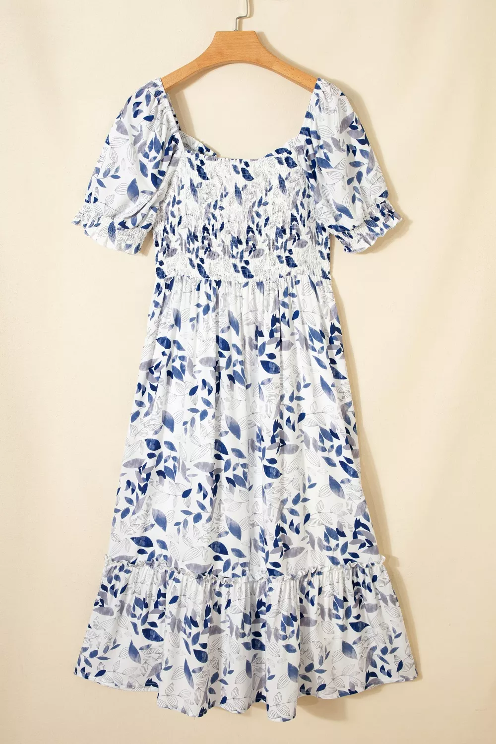 Smocked Bodice Short Puff Sleeve Tiered Floral Midi Dress