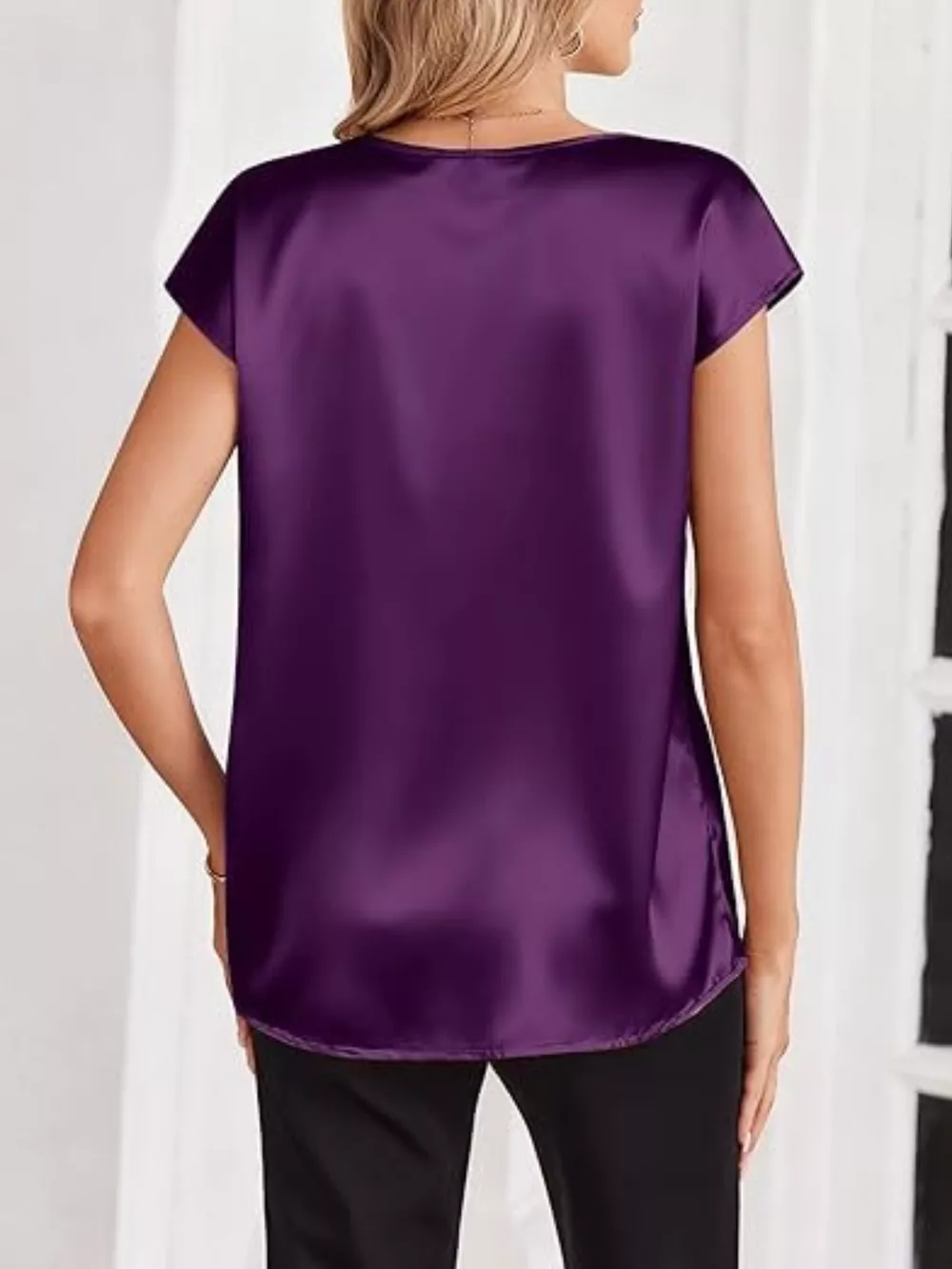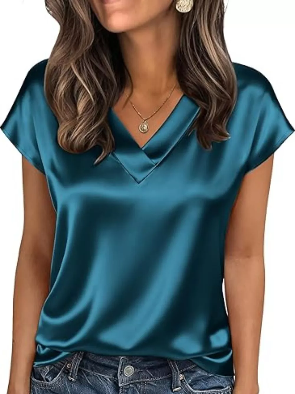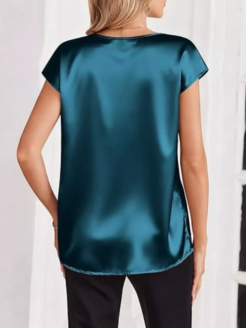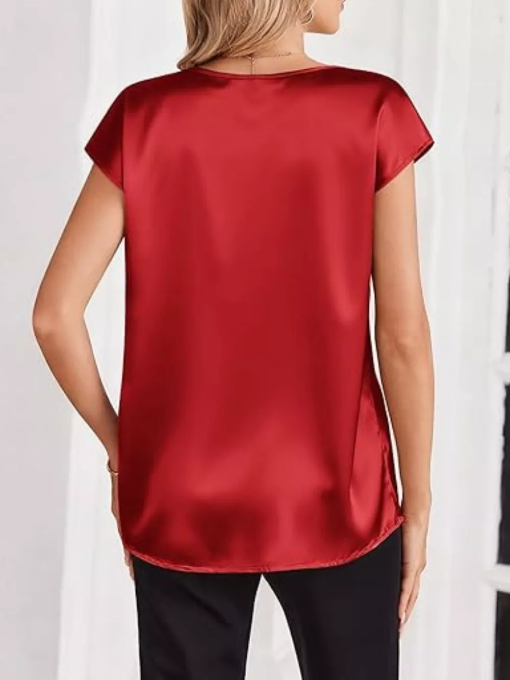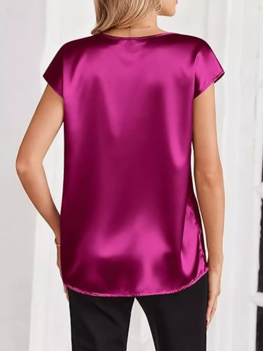 Satin V-Neck Short Sleeve Blouse