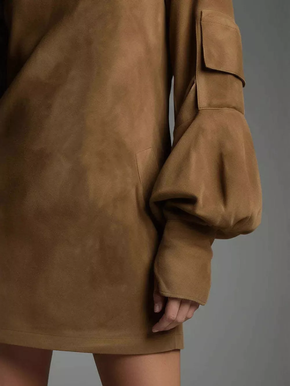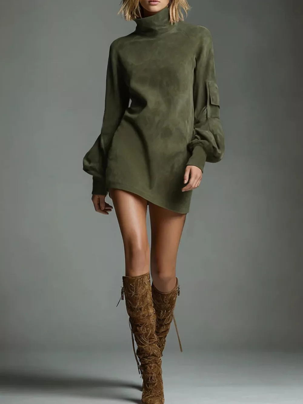 Turtleneck Lantern Sleeve Mini Dress with Pockets