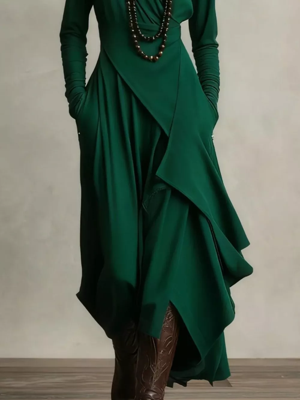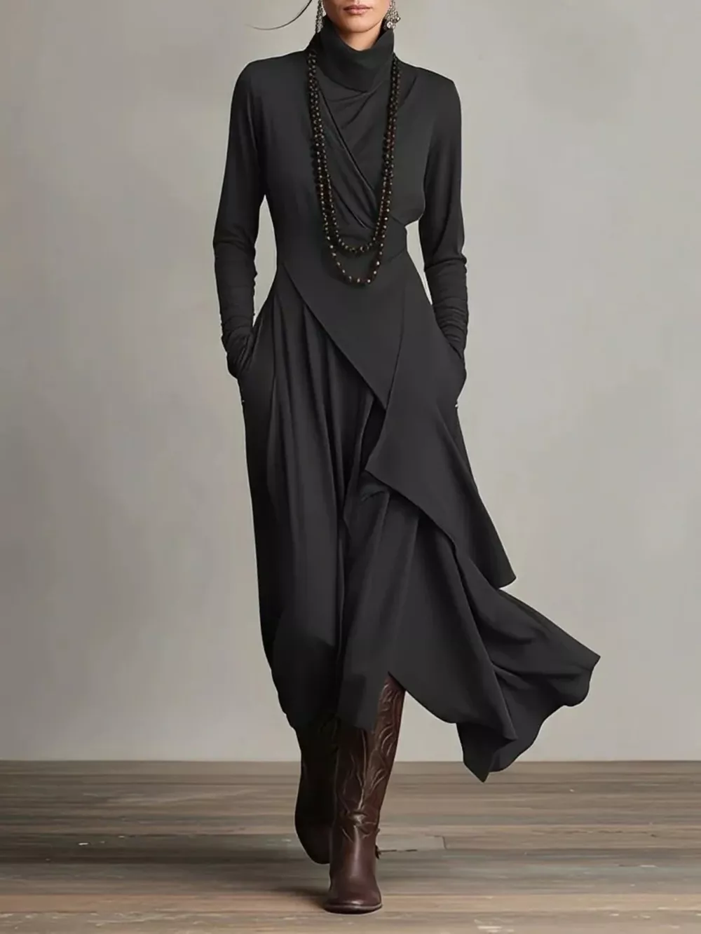 Full Size Turtleneck Asymmetrical Hem Maxi Dress Plus Size
