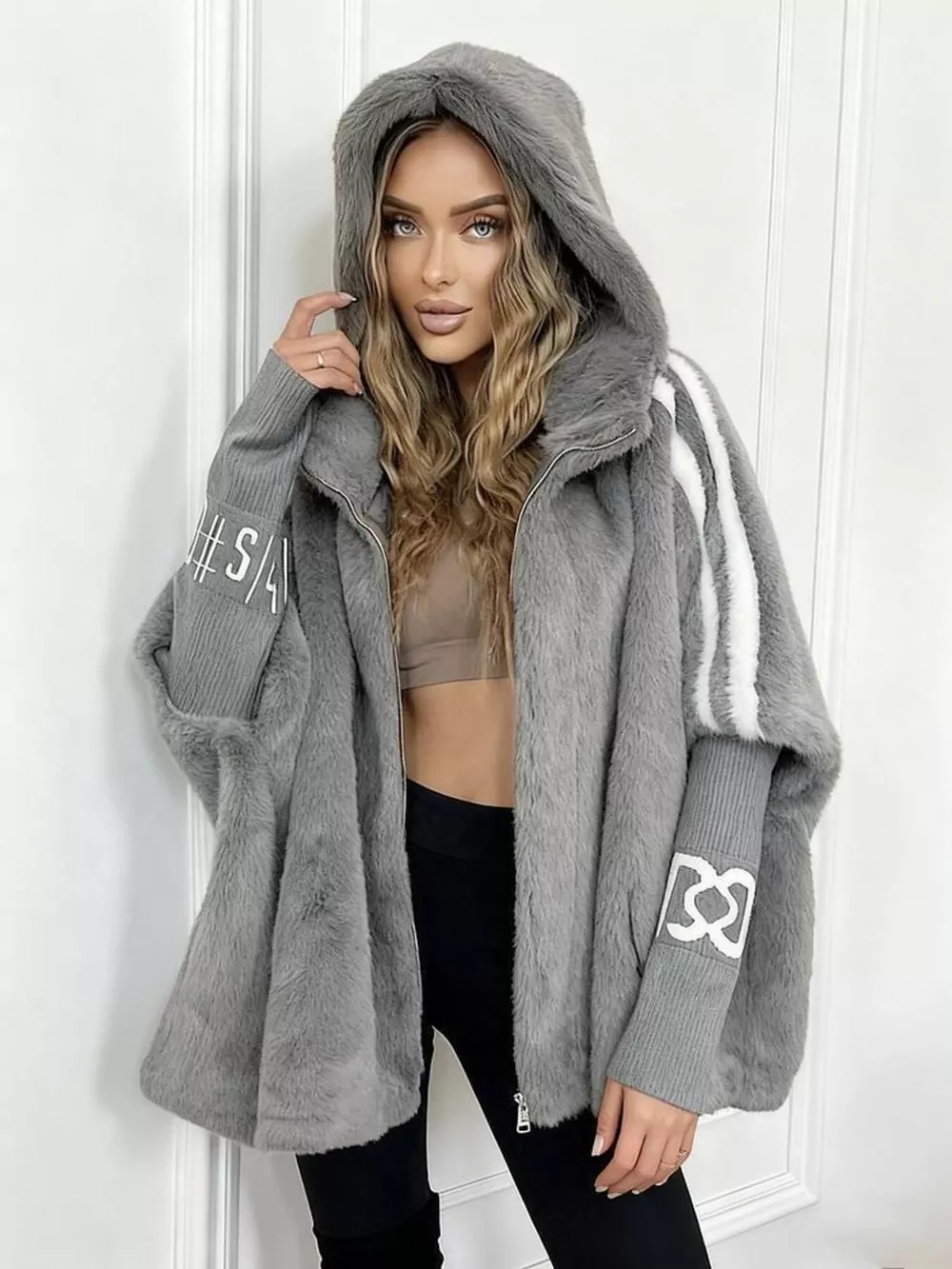 Hooded Faux Fur Striped Trim Outerwear