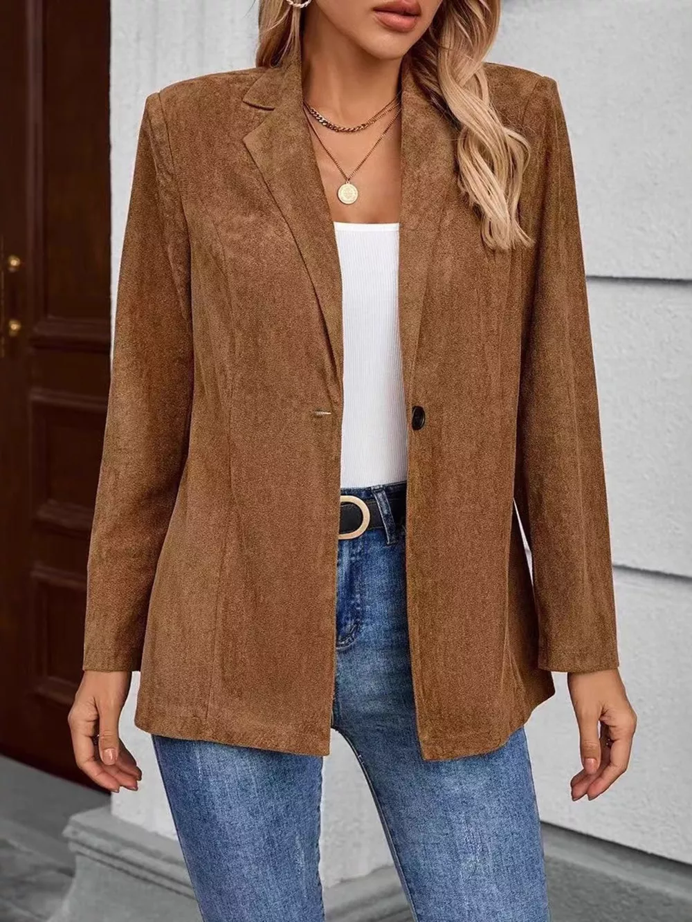 Lapel Collar Single-Button Blazer