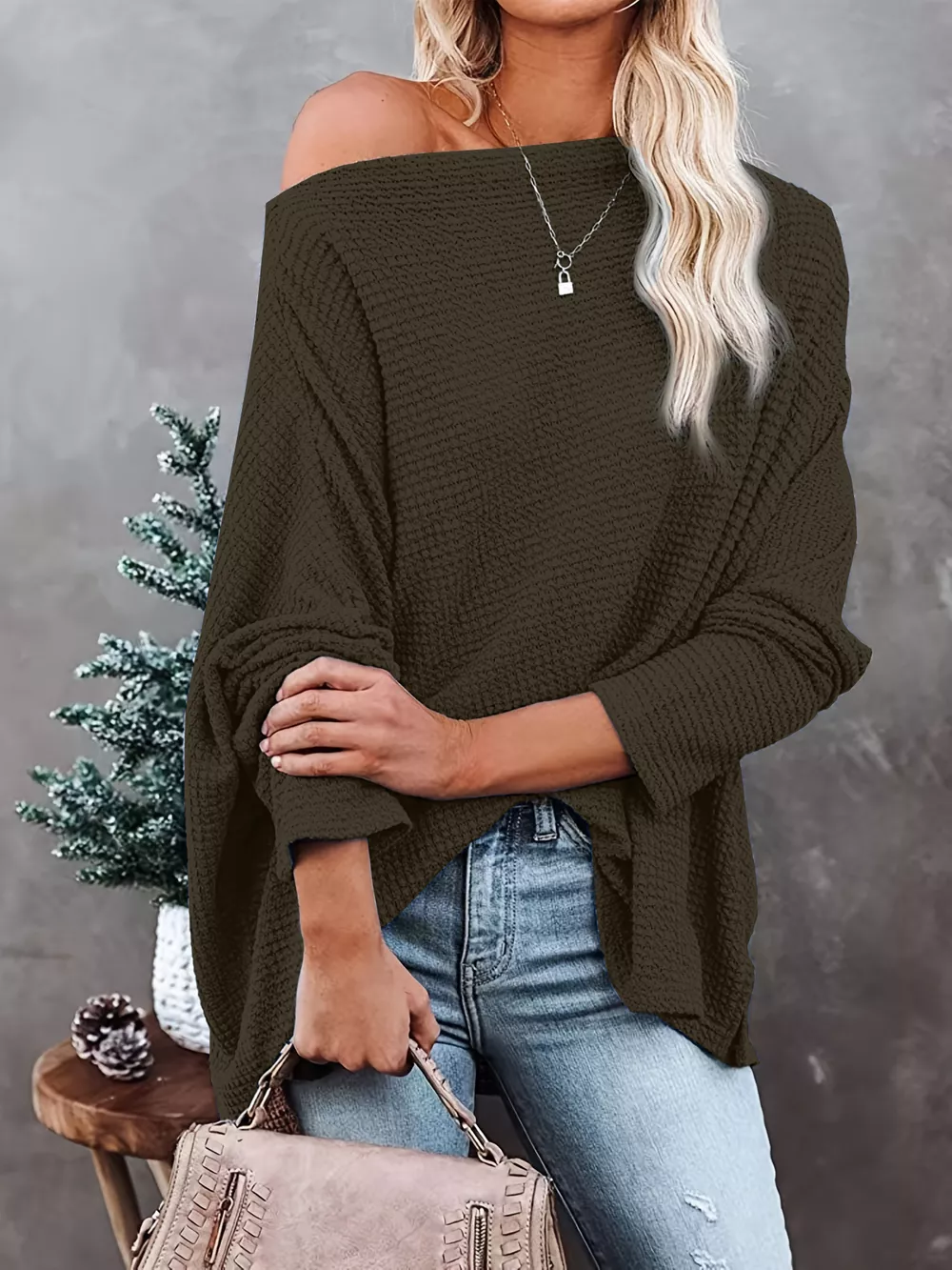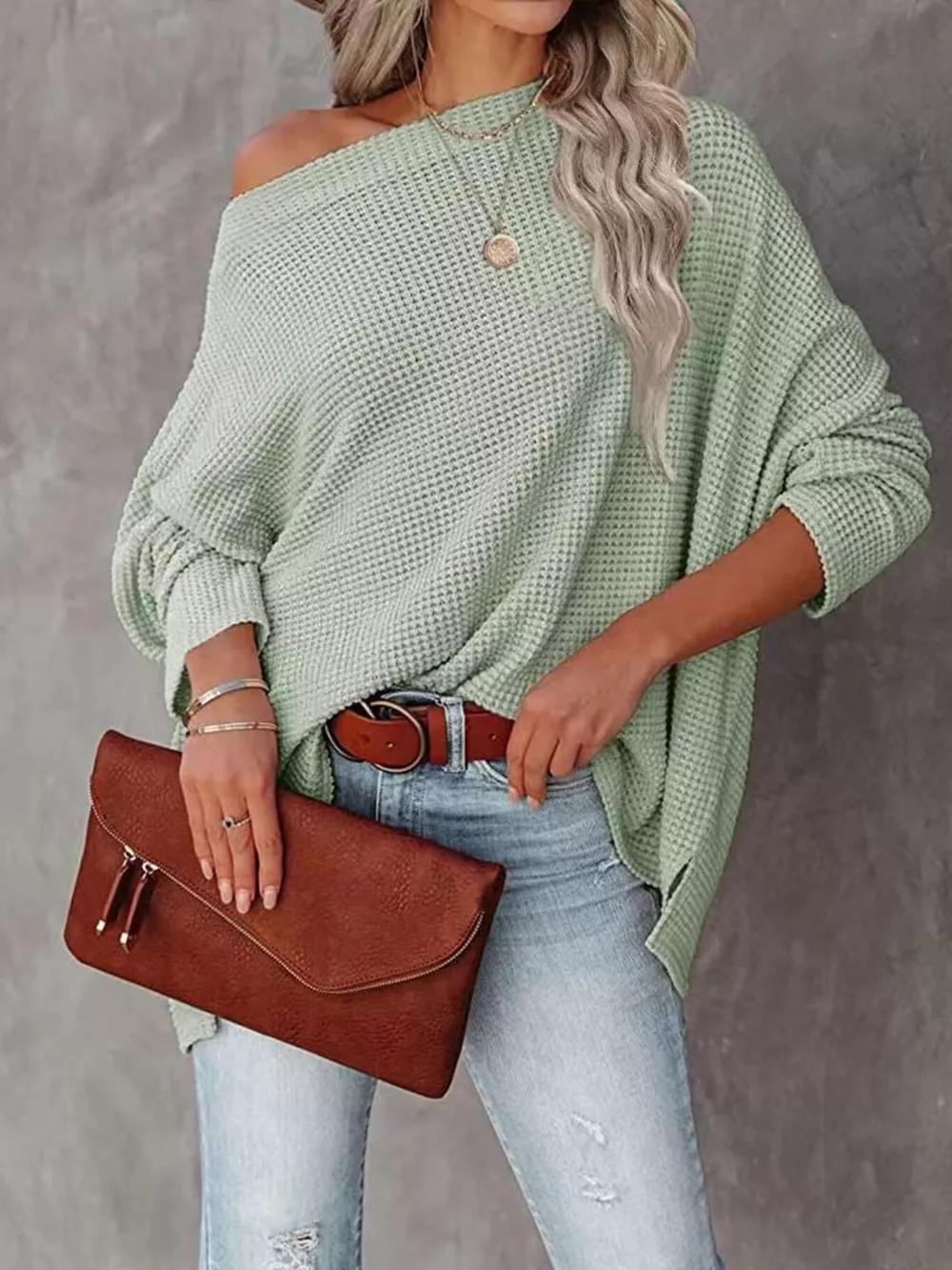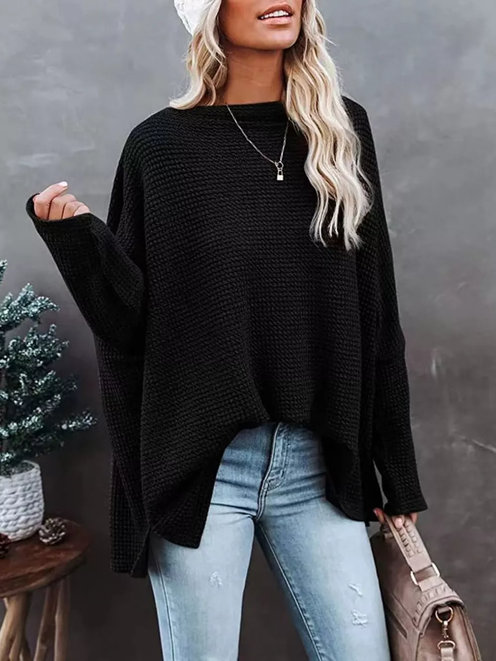 - Features:Oversized,Waffle-Knit