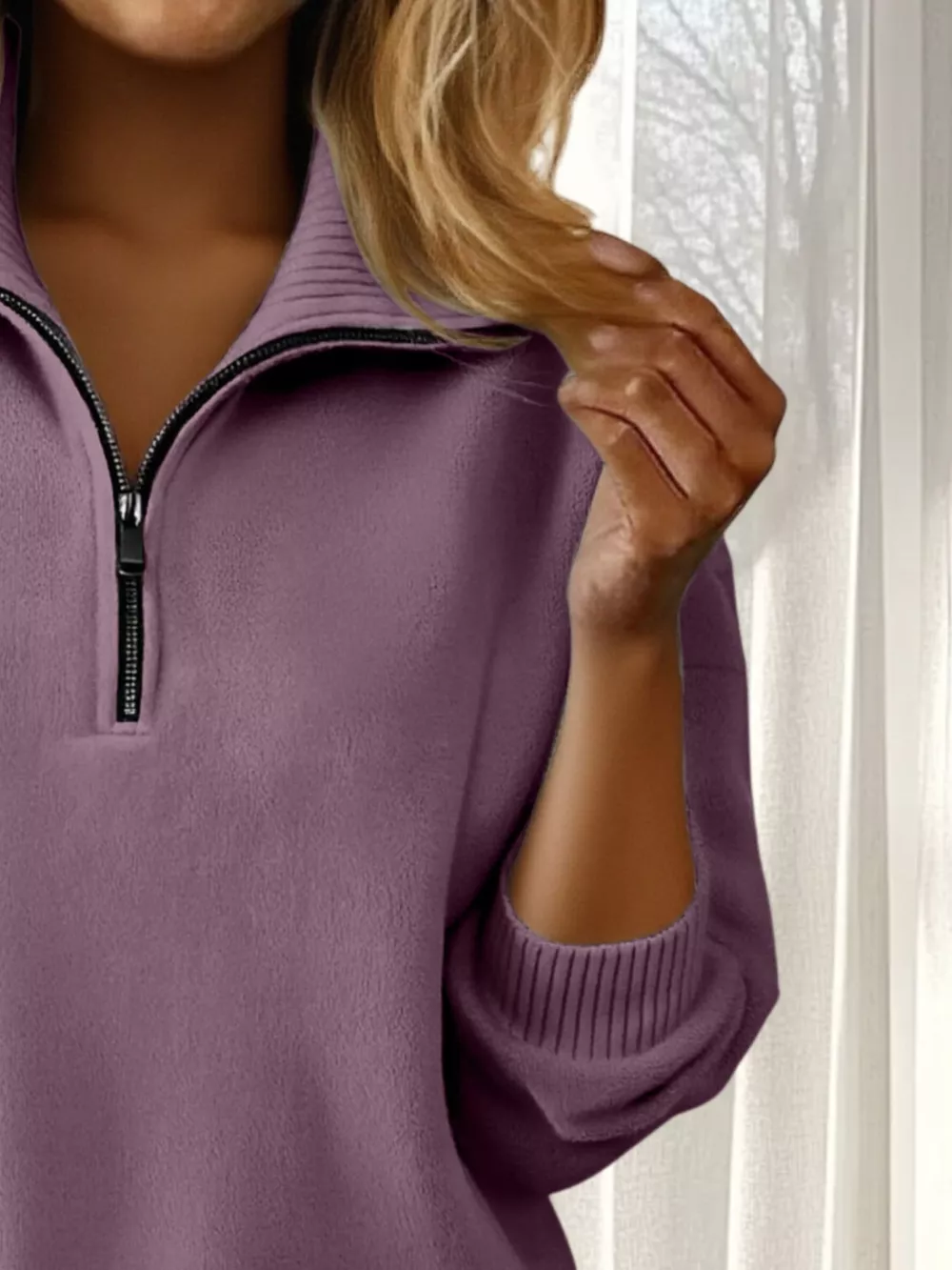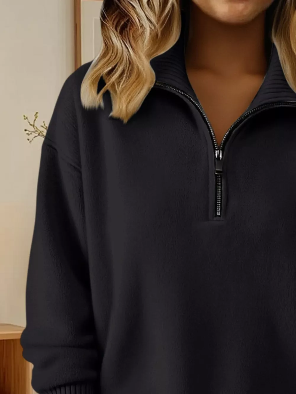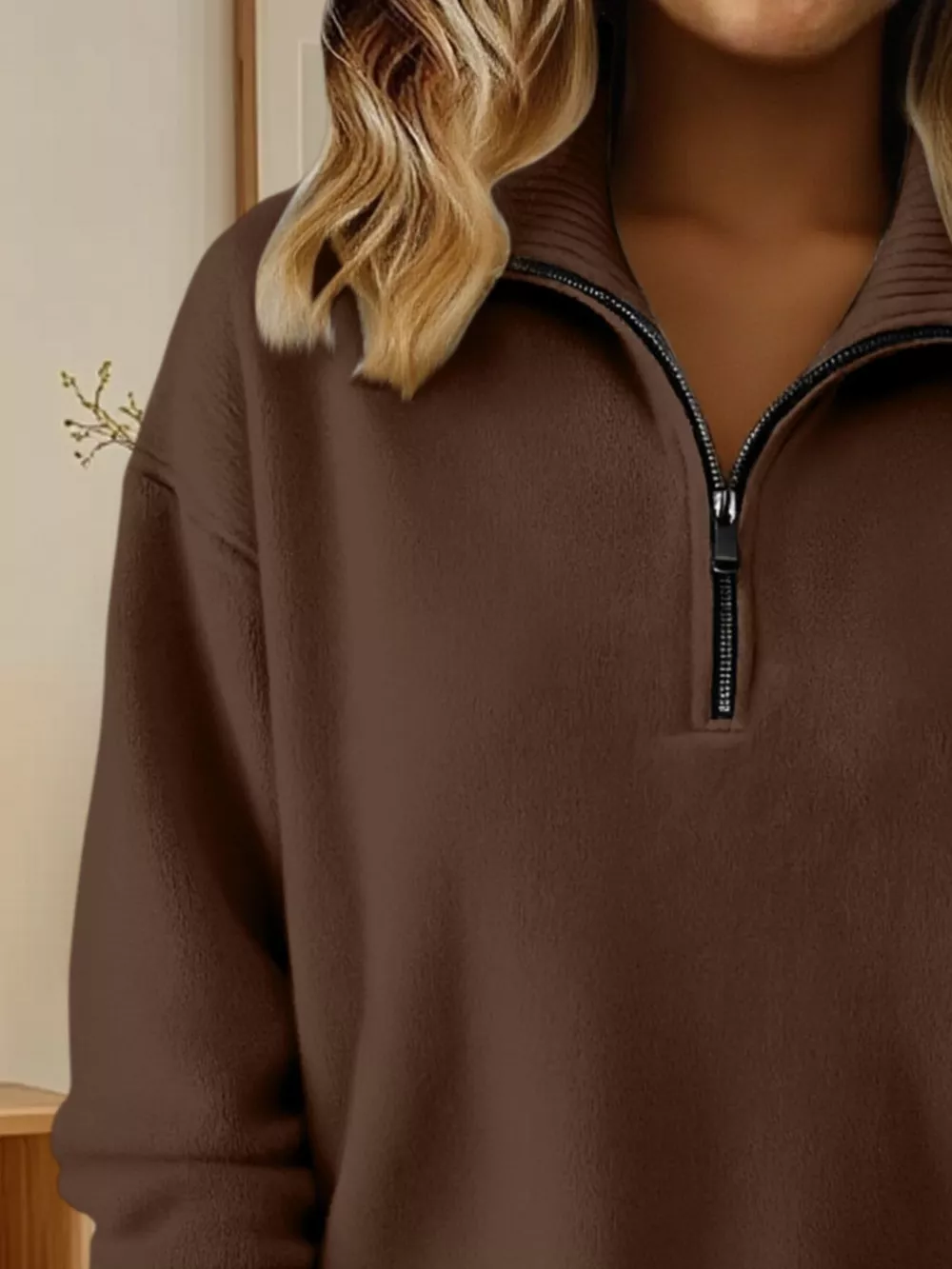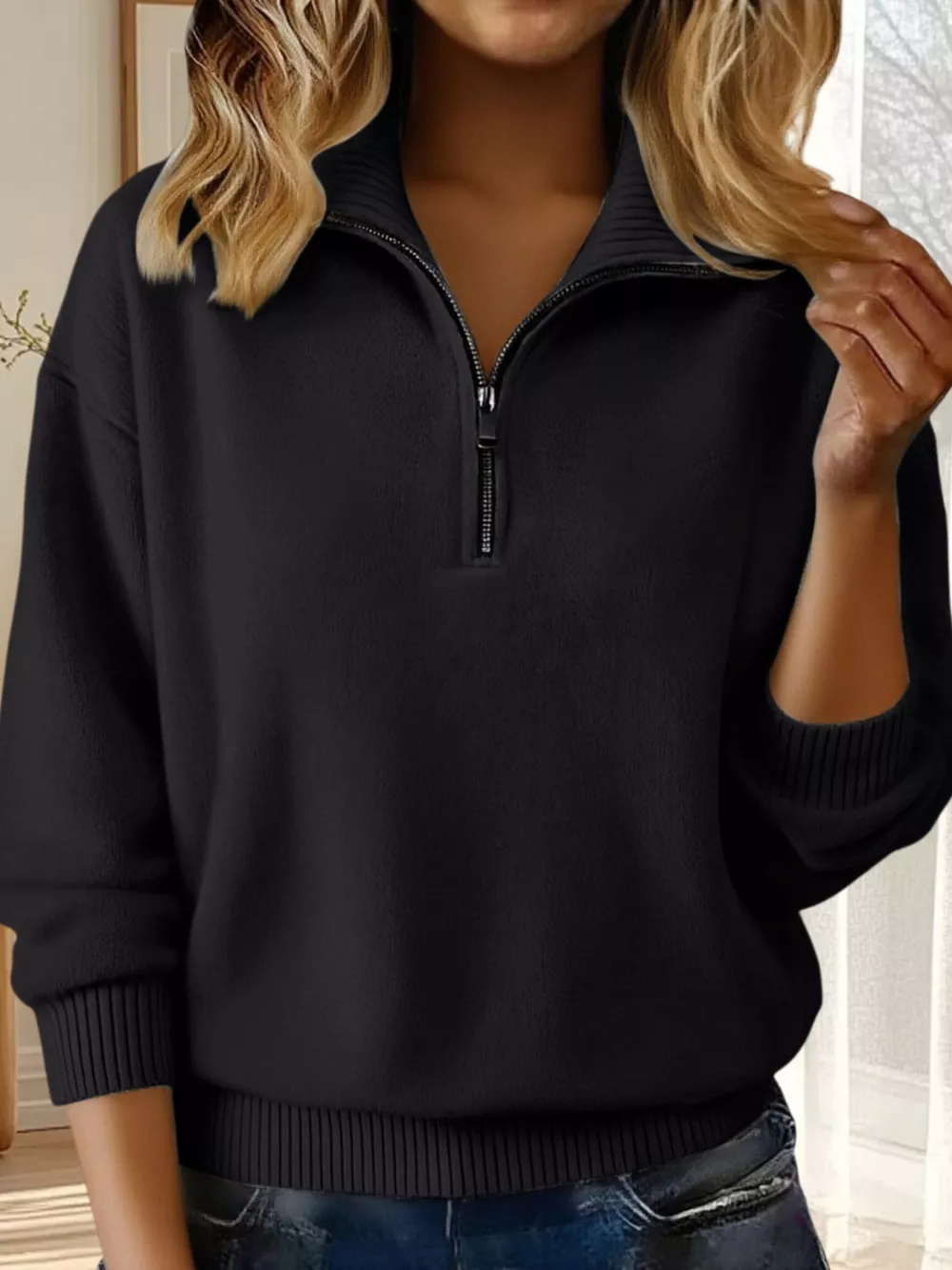 Full Size Half Zip Dropped Shoulder Sweater Plus Size