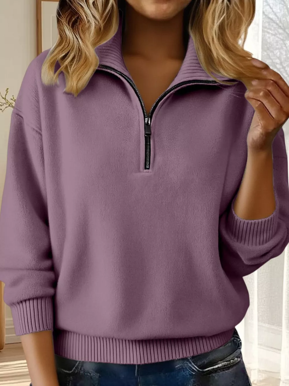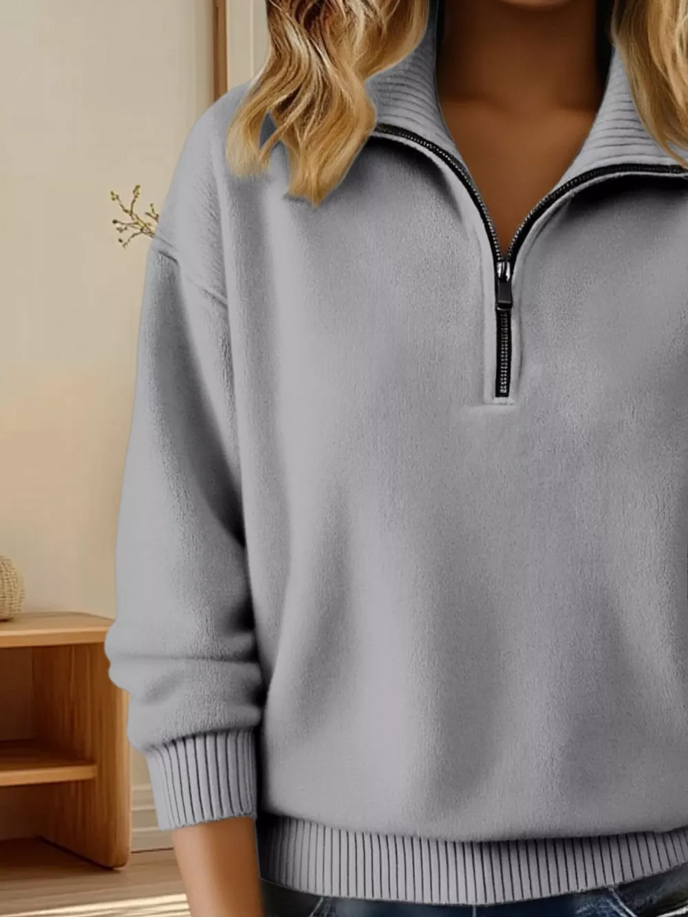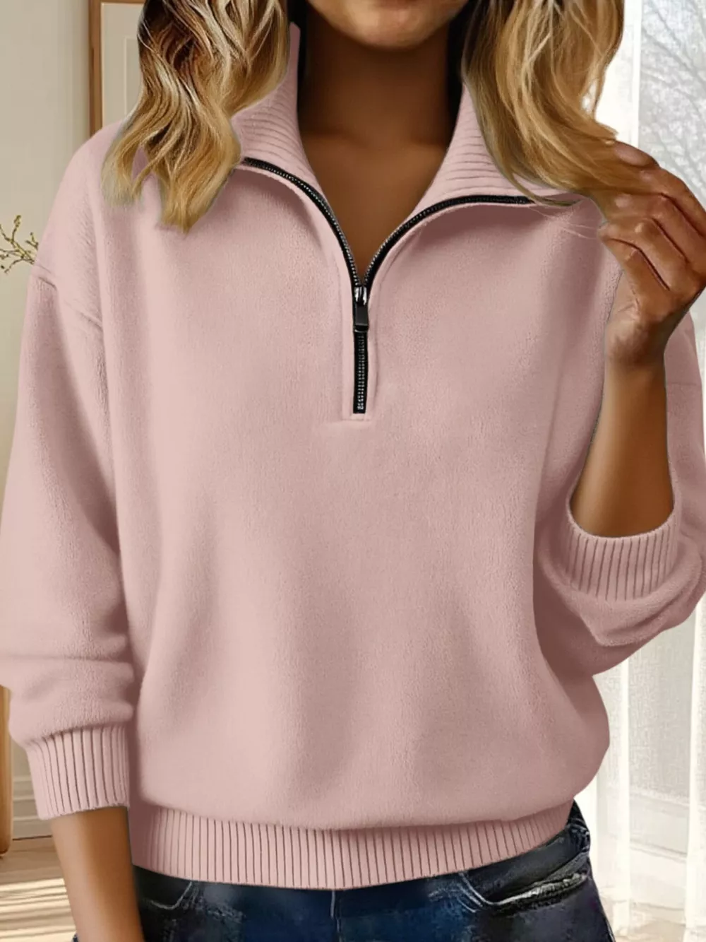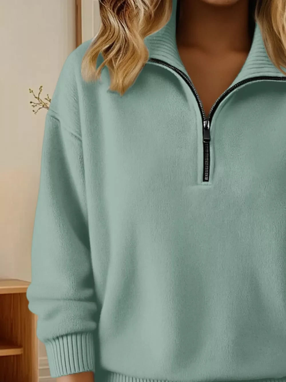 Full Size Half Zip Dropped Shoulder Sweater Plus Size