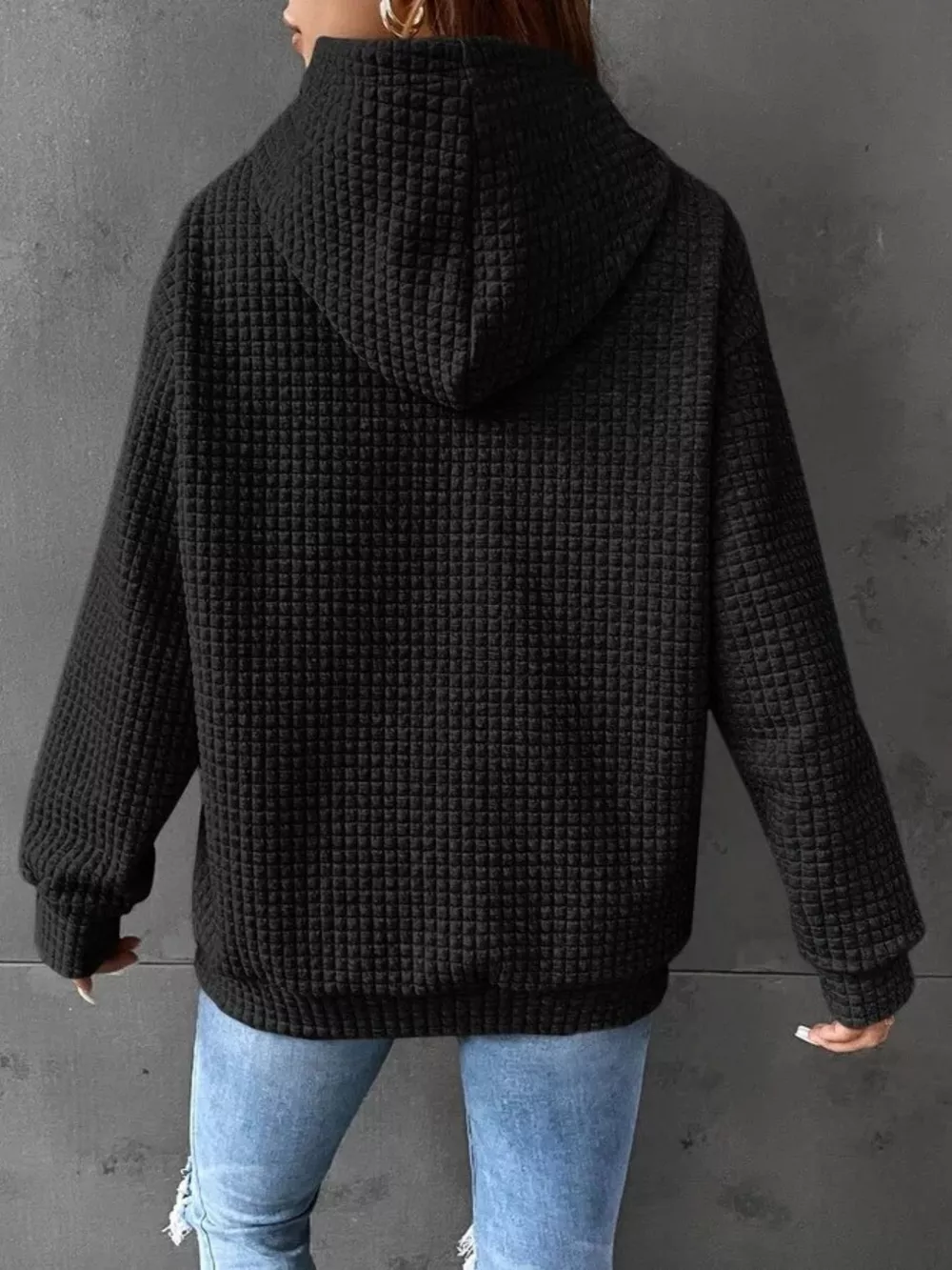 Full Size Textured Kangaroo Pocket Hoodie Plus Size