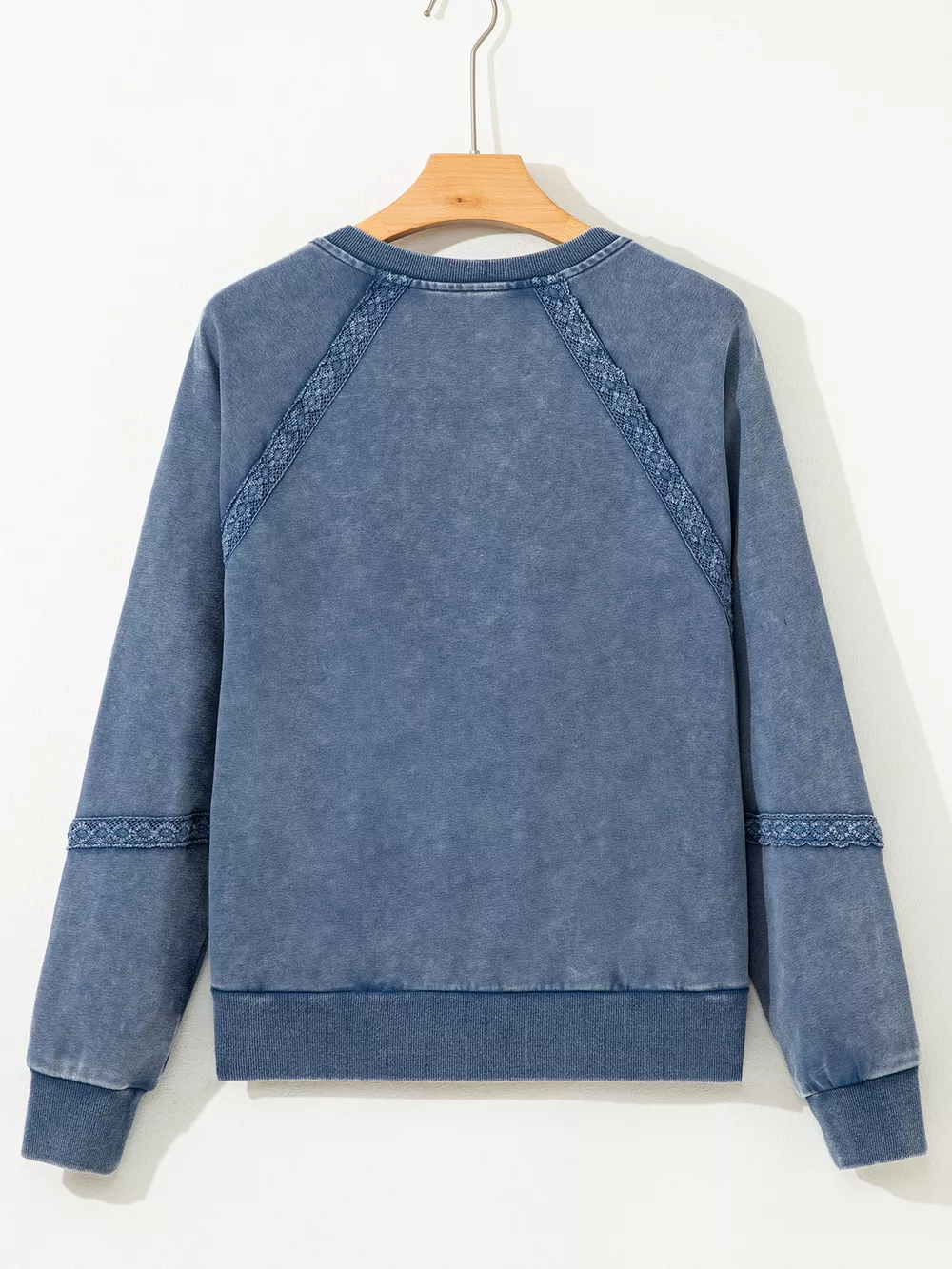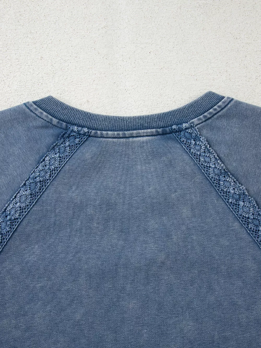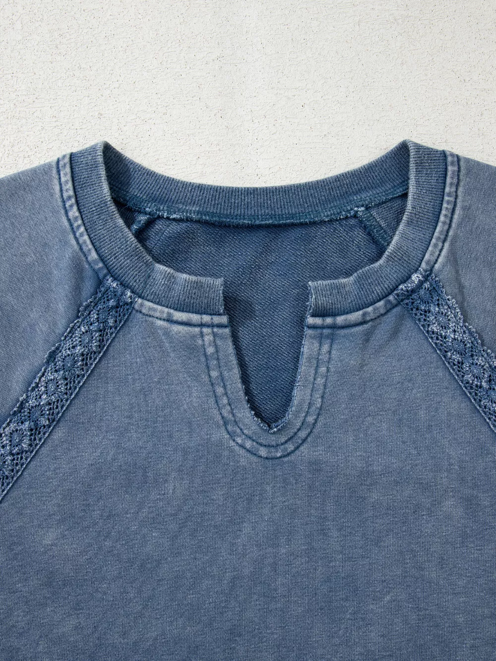 Lace Patchwork Detail Notched Neck Mineral Wash Baggy Sweatshirt