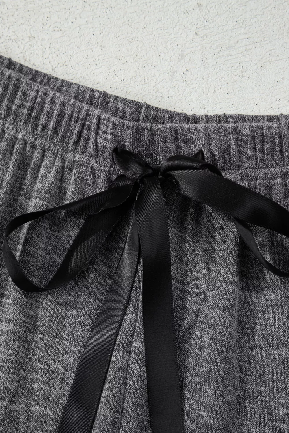 3pcs V Neck T Shirt and Ribbon Knot Pants Lounge Set with Open Duster