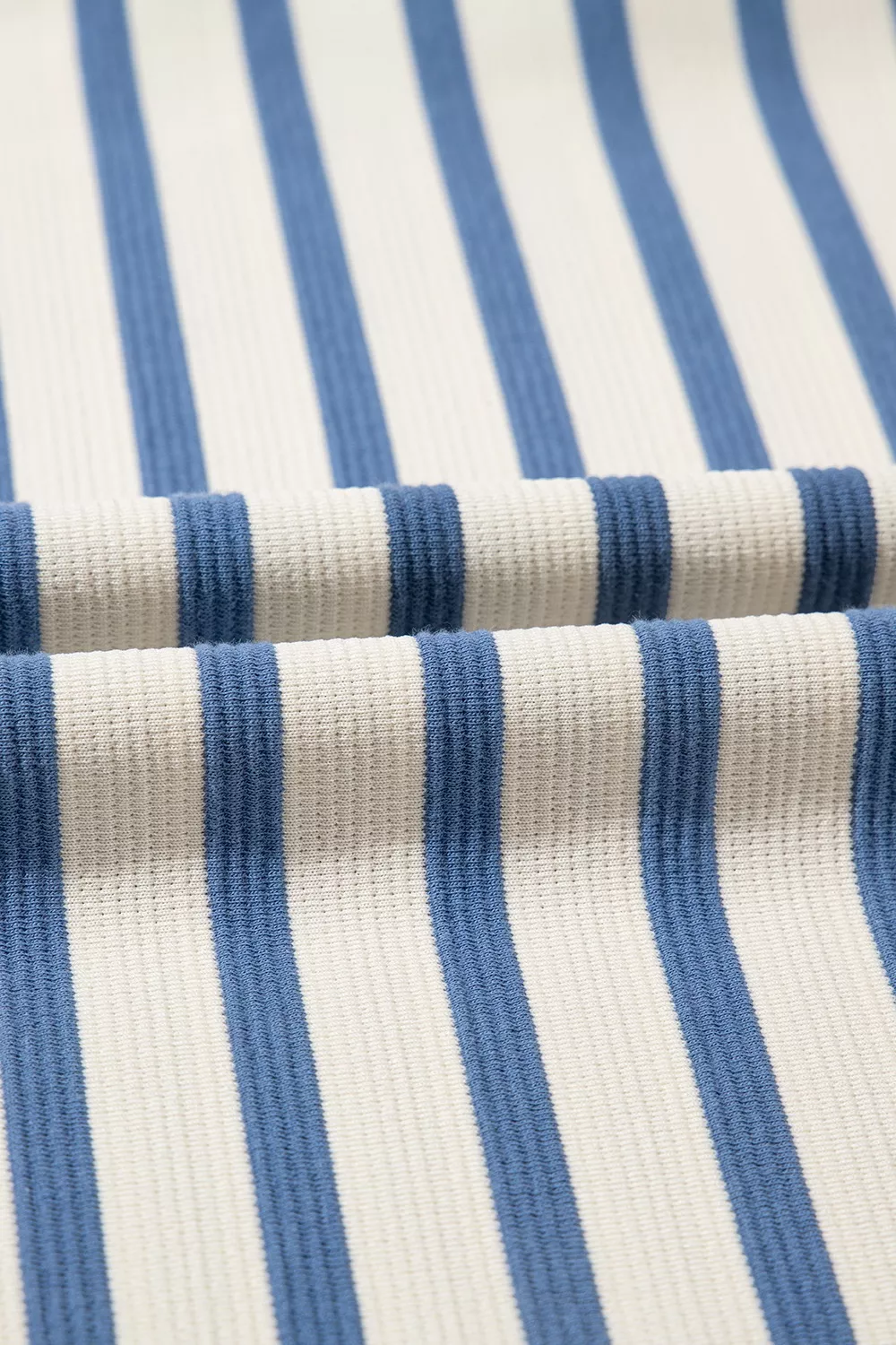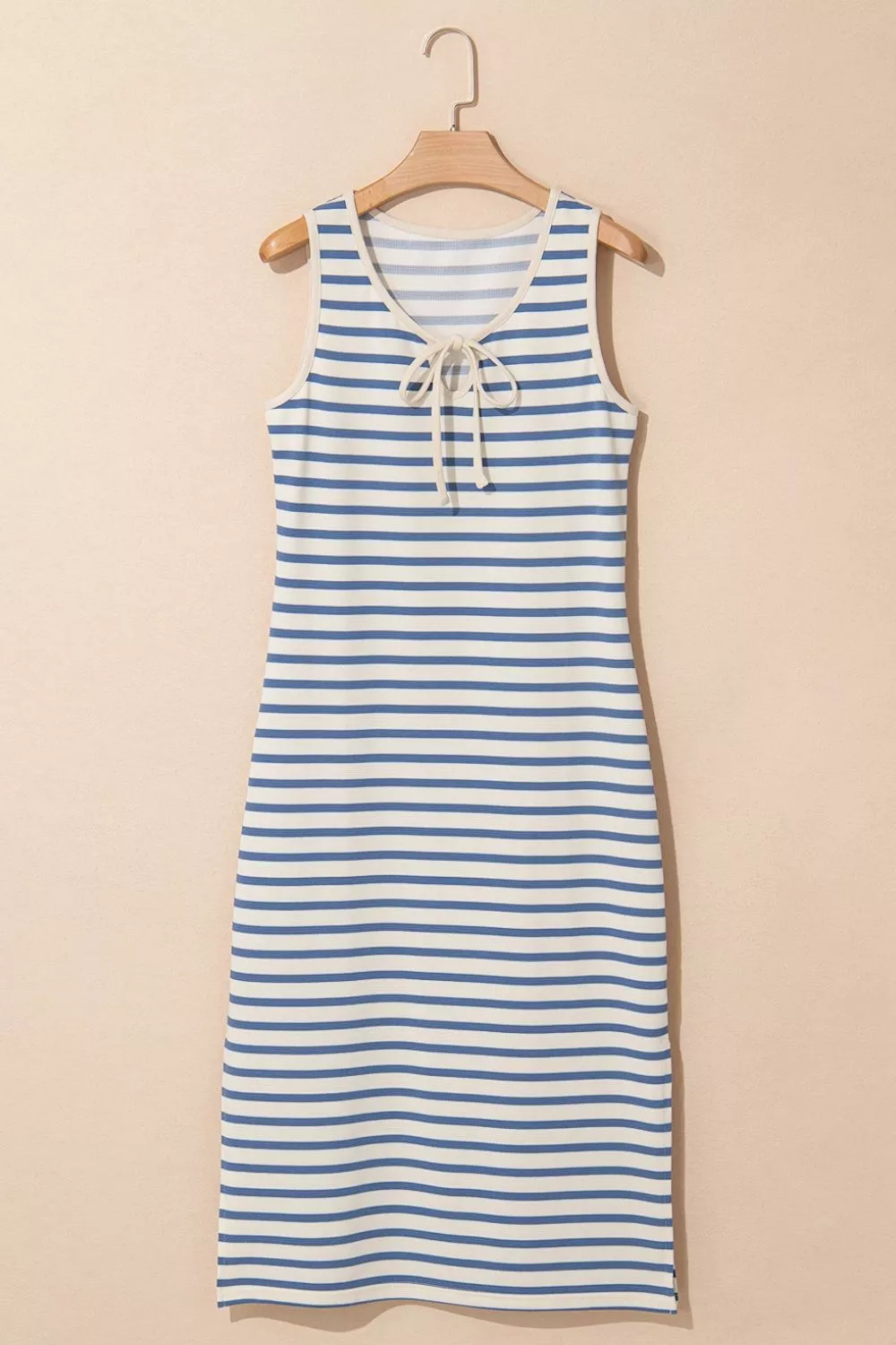 Stripe Tie V Neck Sleeveless Side Slit Midi Dress