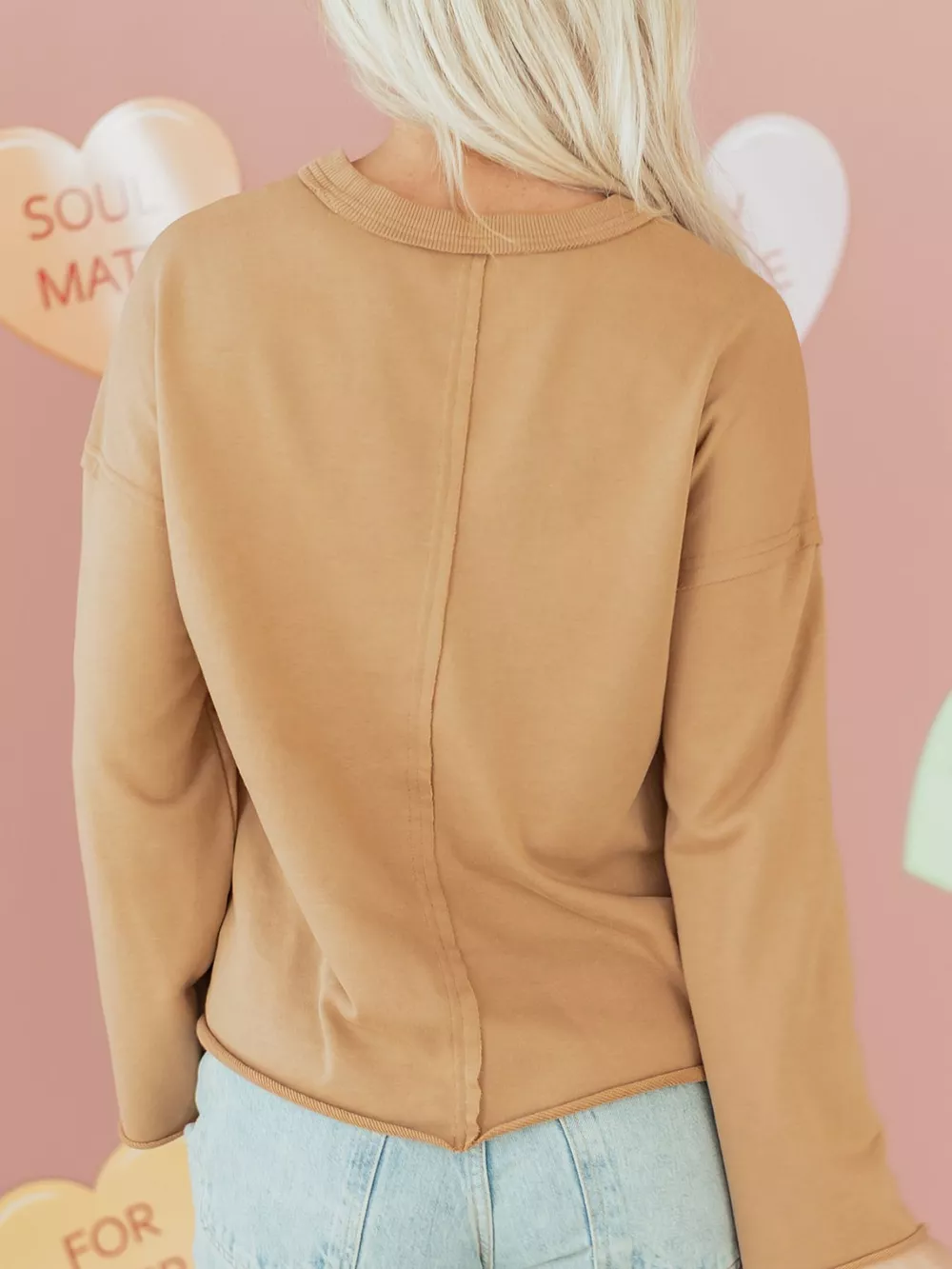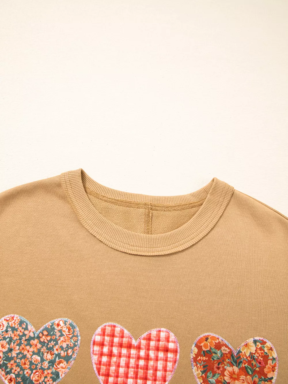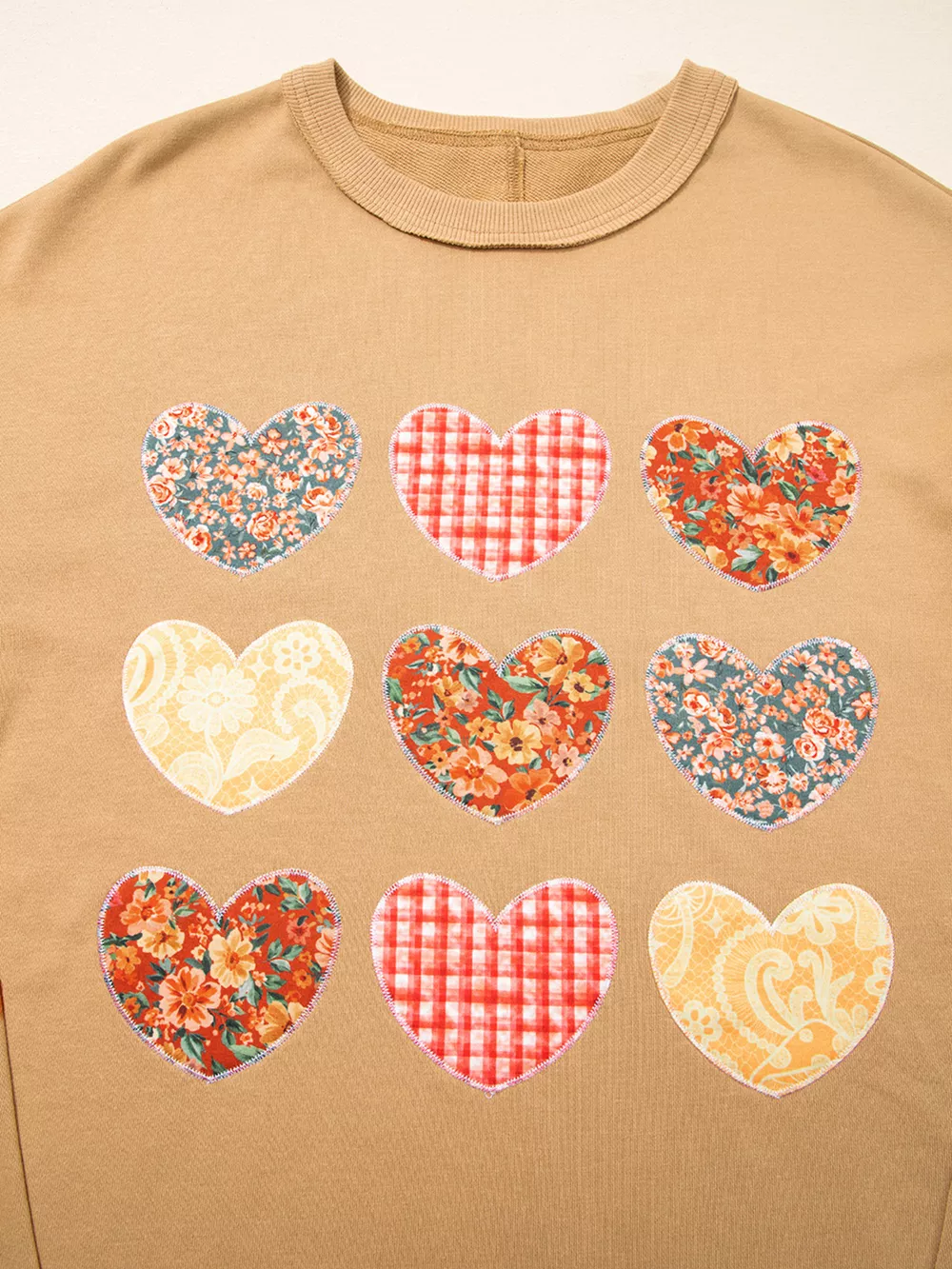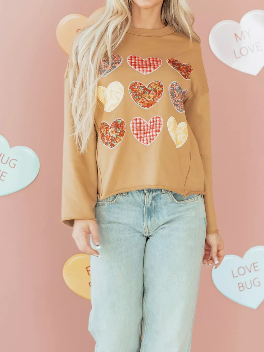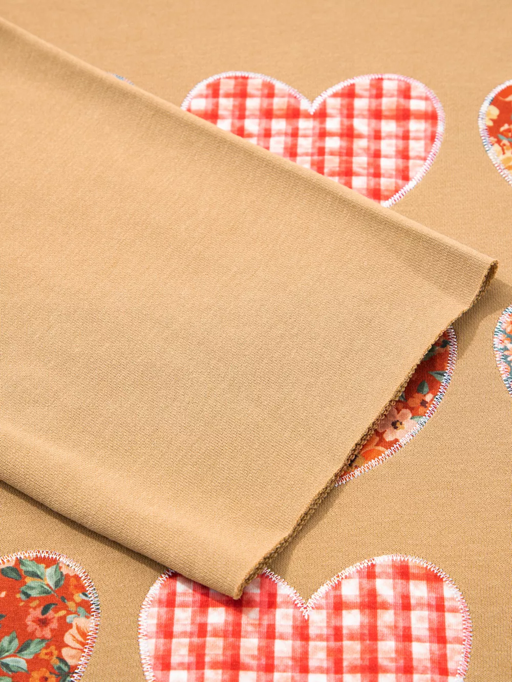 Plaid Floral Heart Stitched Exposed Seam Mineral Wash Sweatshirt