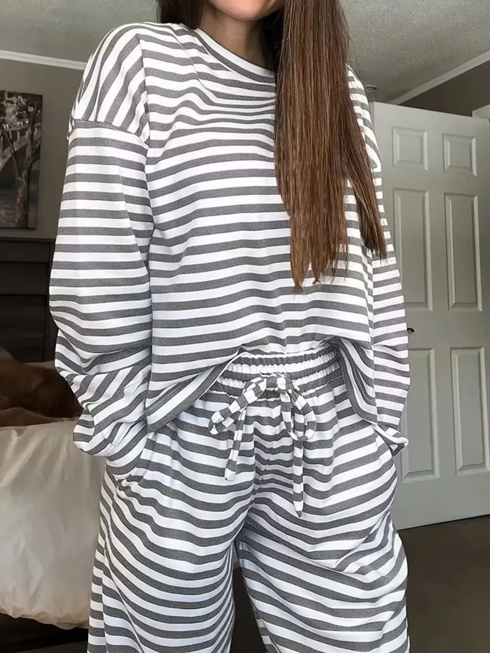Striped Long Sleeve Top and Pants Set