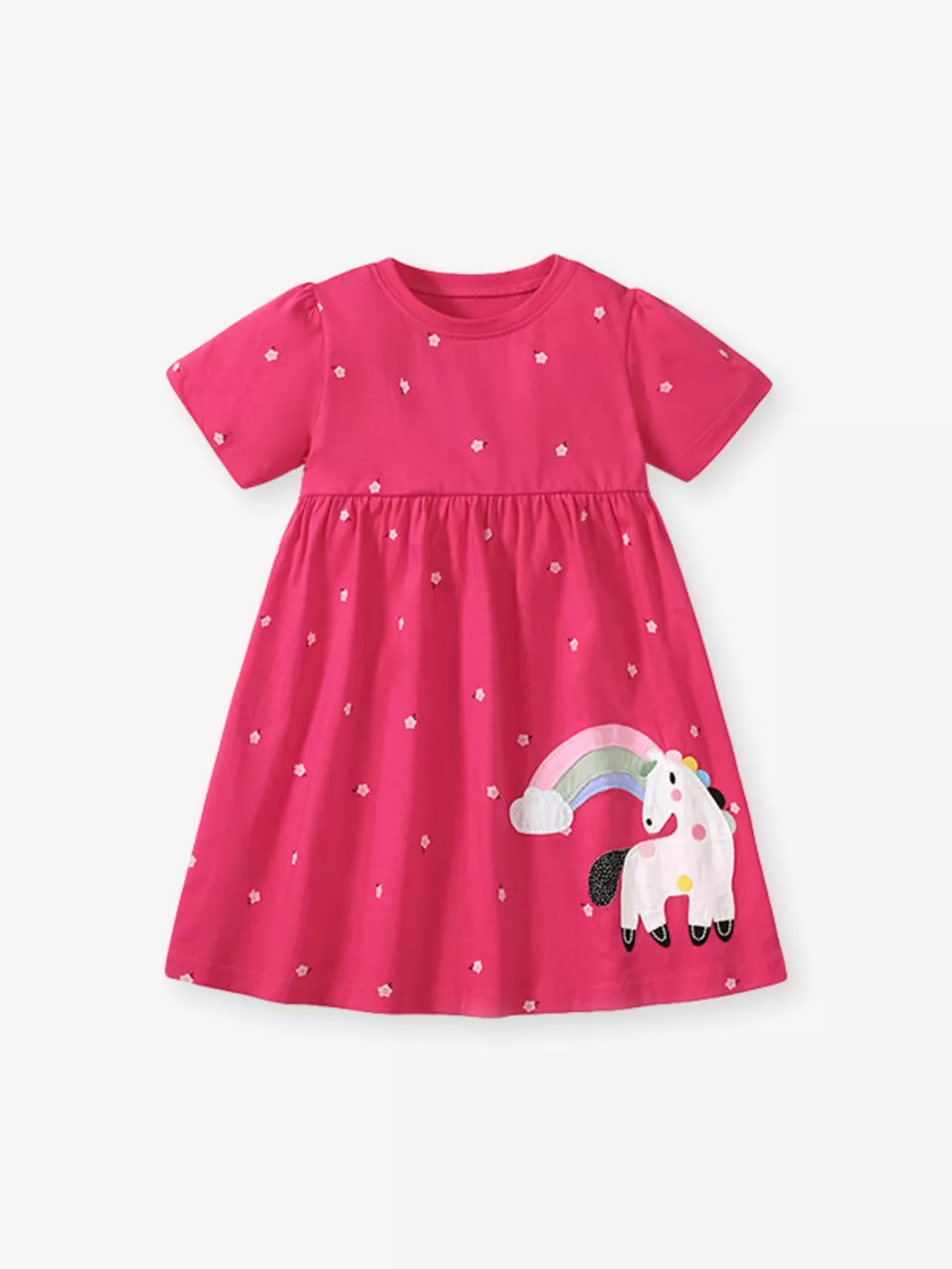 Children's Unicorn Rainbow Round Neck Casual Dress