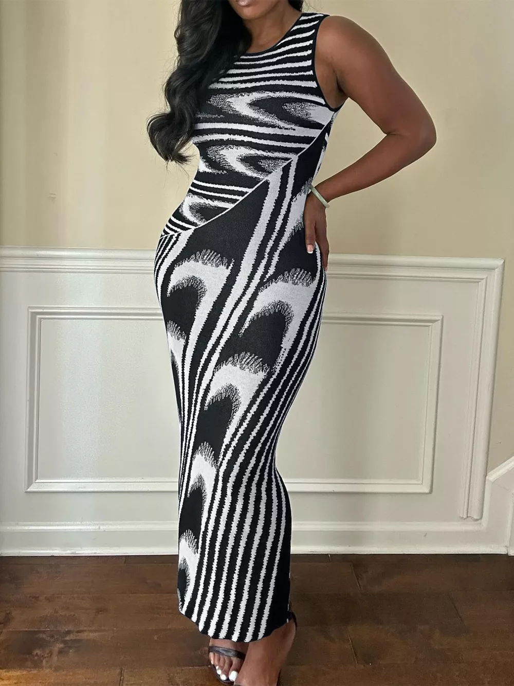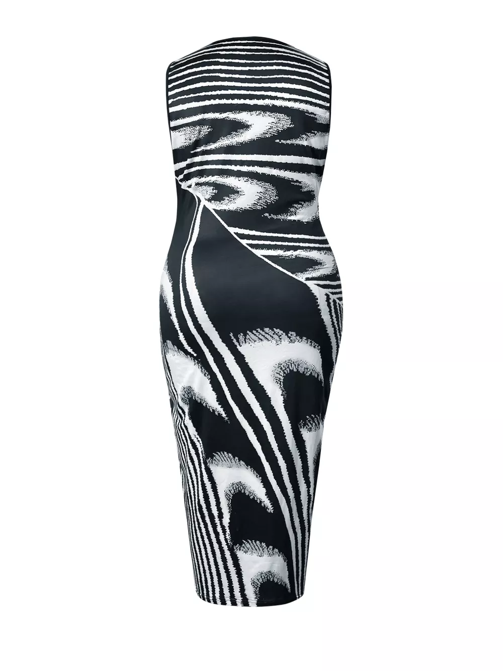 Plus Size Sleeveless Bodycon Maxi Dress with Abstract Print