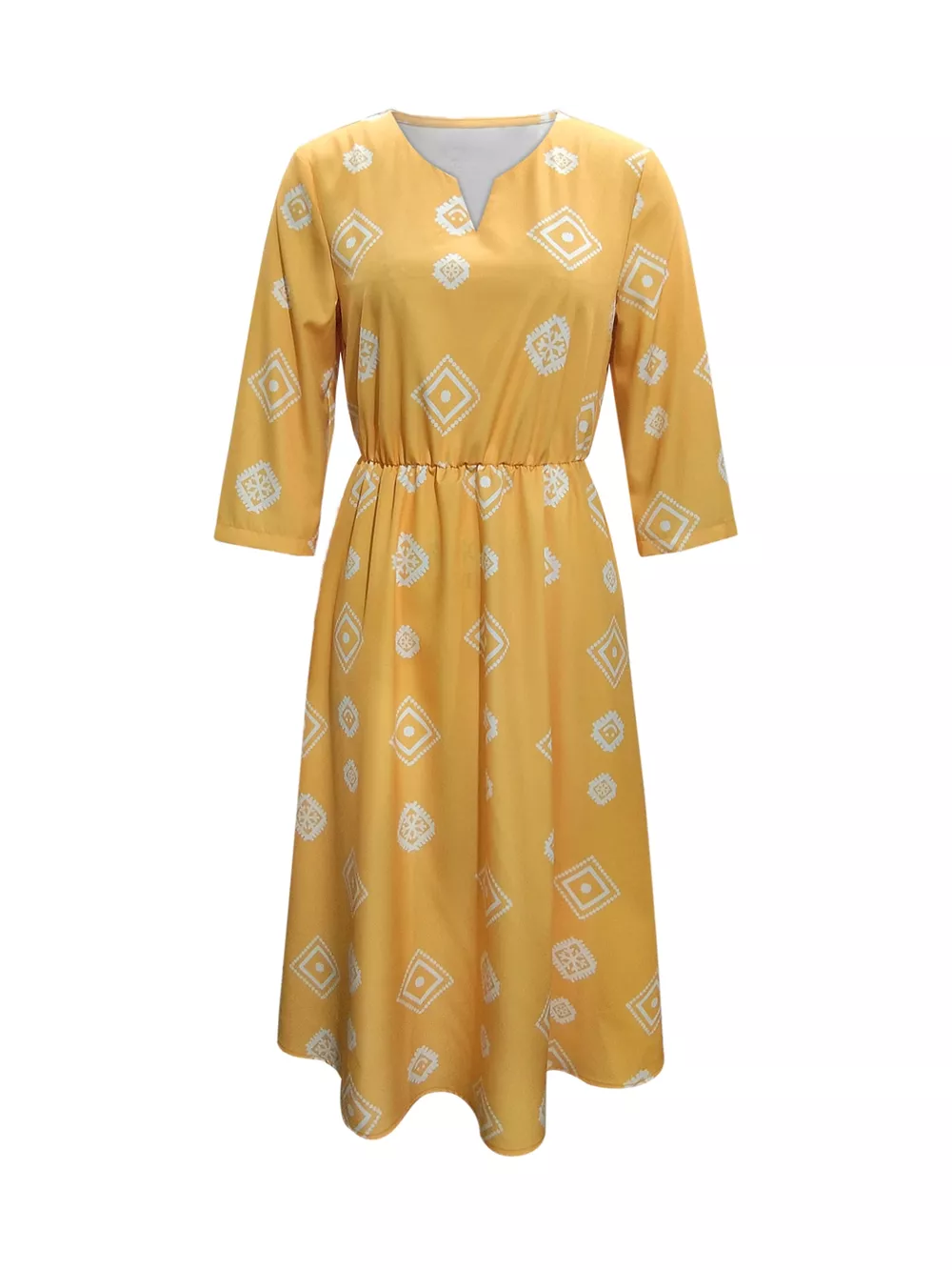 Notched 3/4 Sleeve Midi Dress
