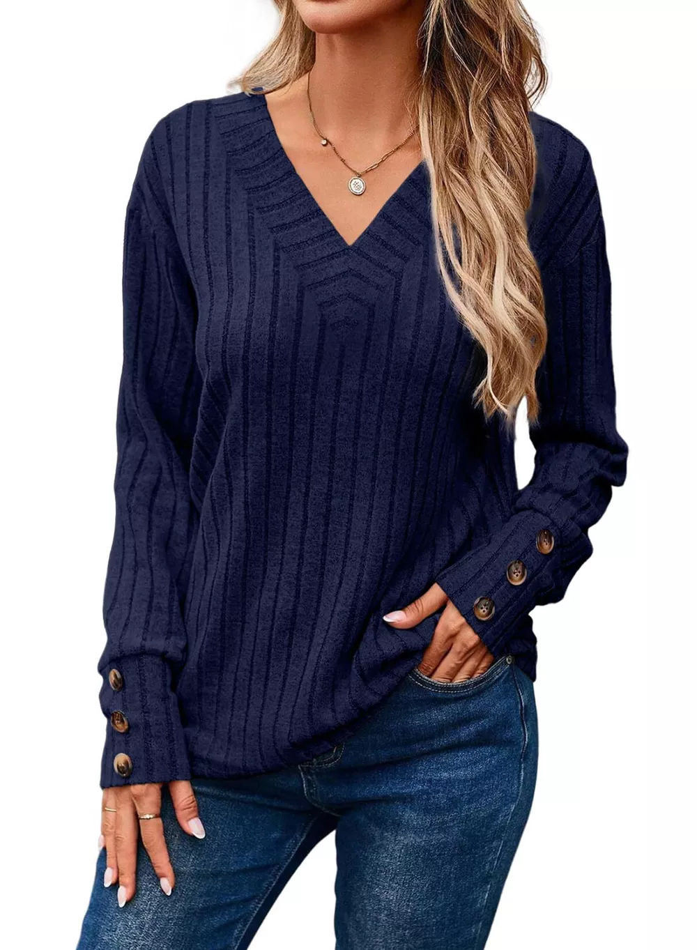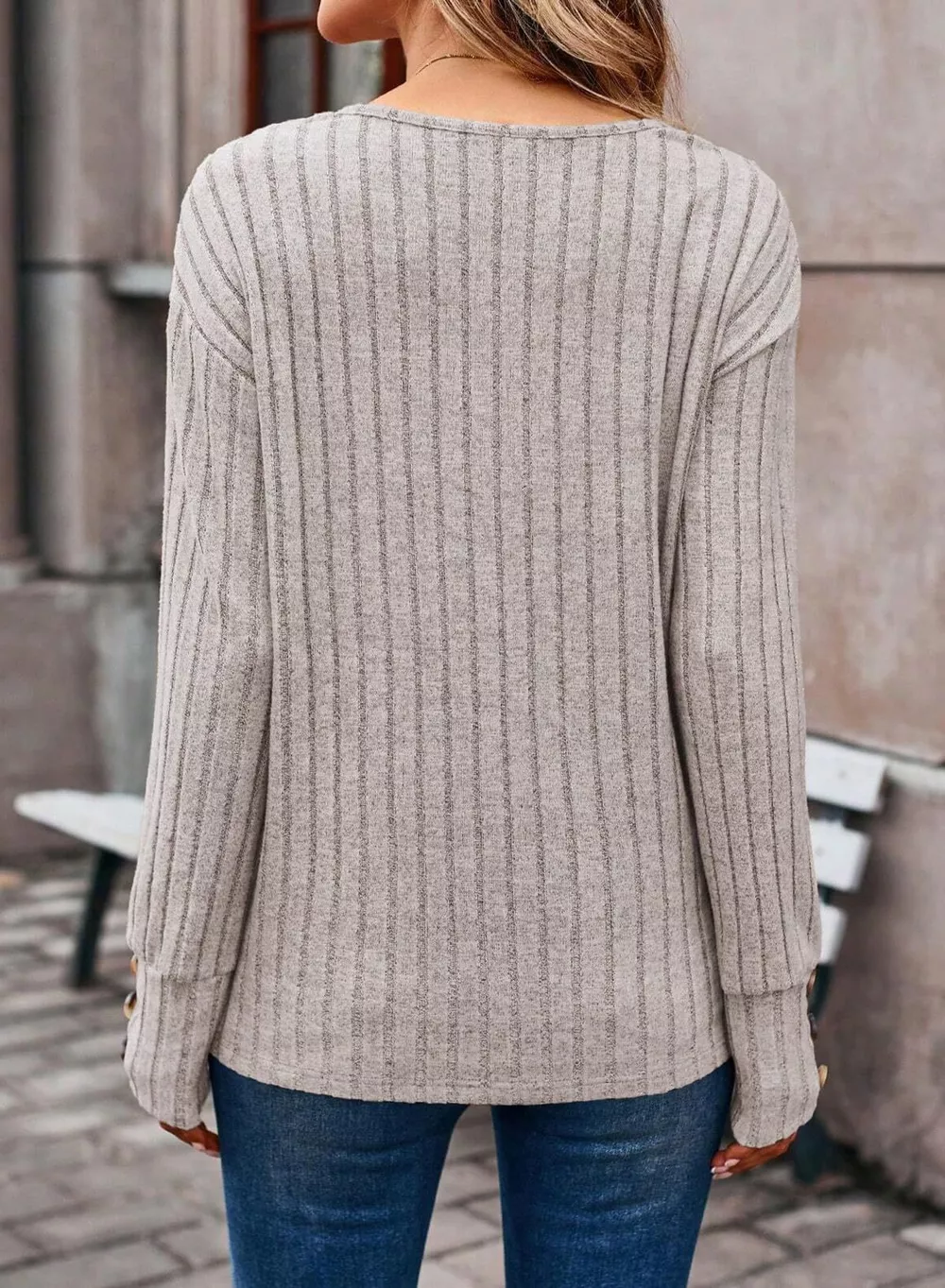 Ribbed Knit V-Neck Top