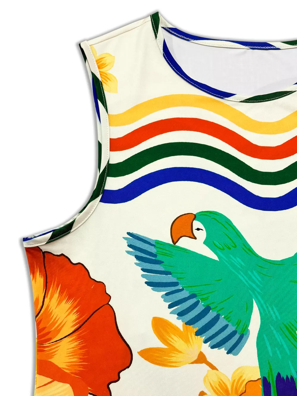 Plus Size Tropical Parrot Print Sleeveless Midi Dress