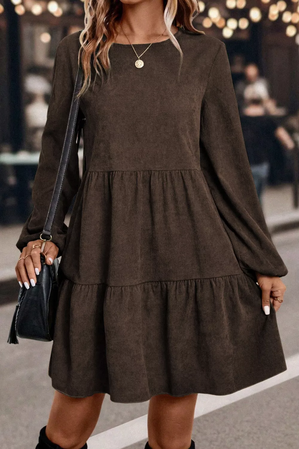 Long Sleeve Tiered Mini Dress
