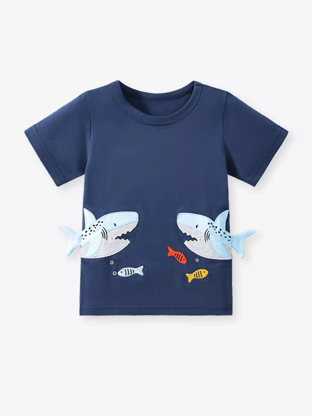 Children's Shark Graphic Crew Neck Short Sleeve T-Shirt