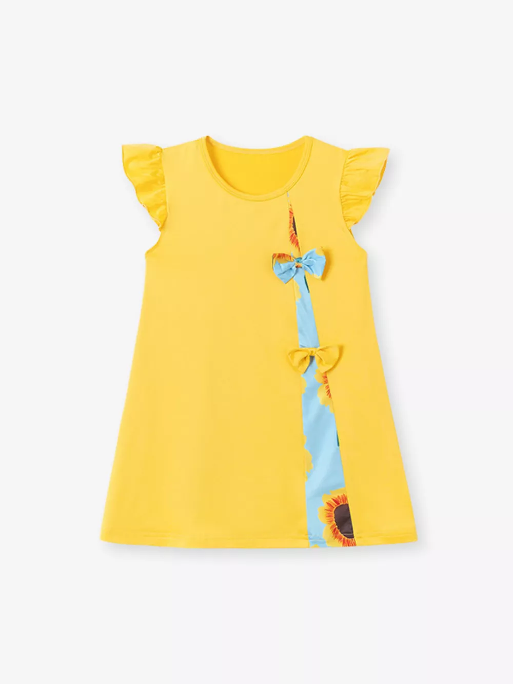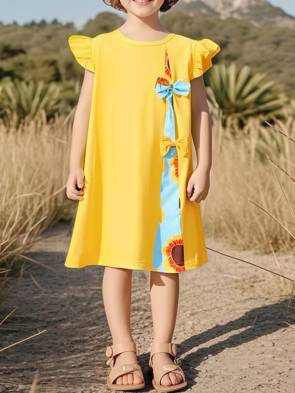 Children's Sunflower Ruffle Cap Sleeve Dress