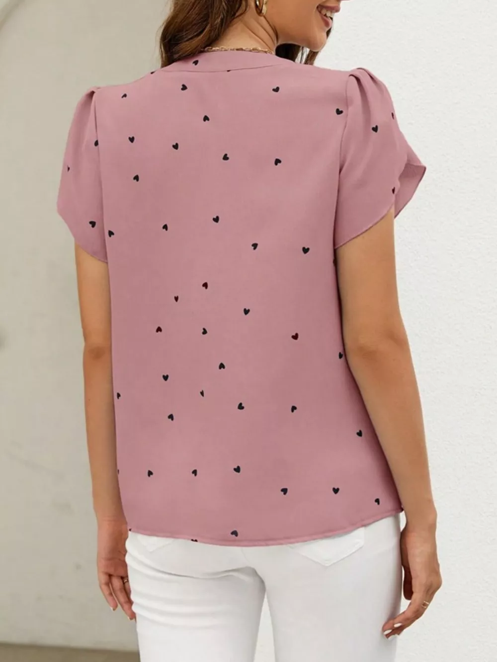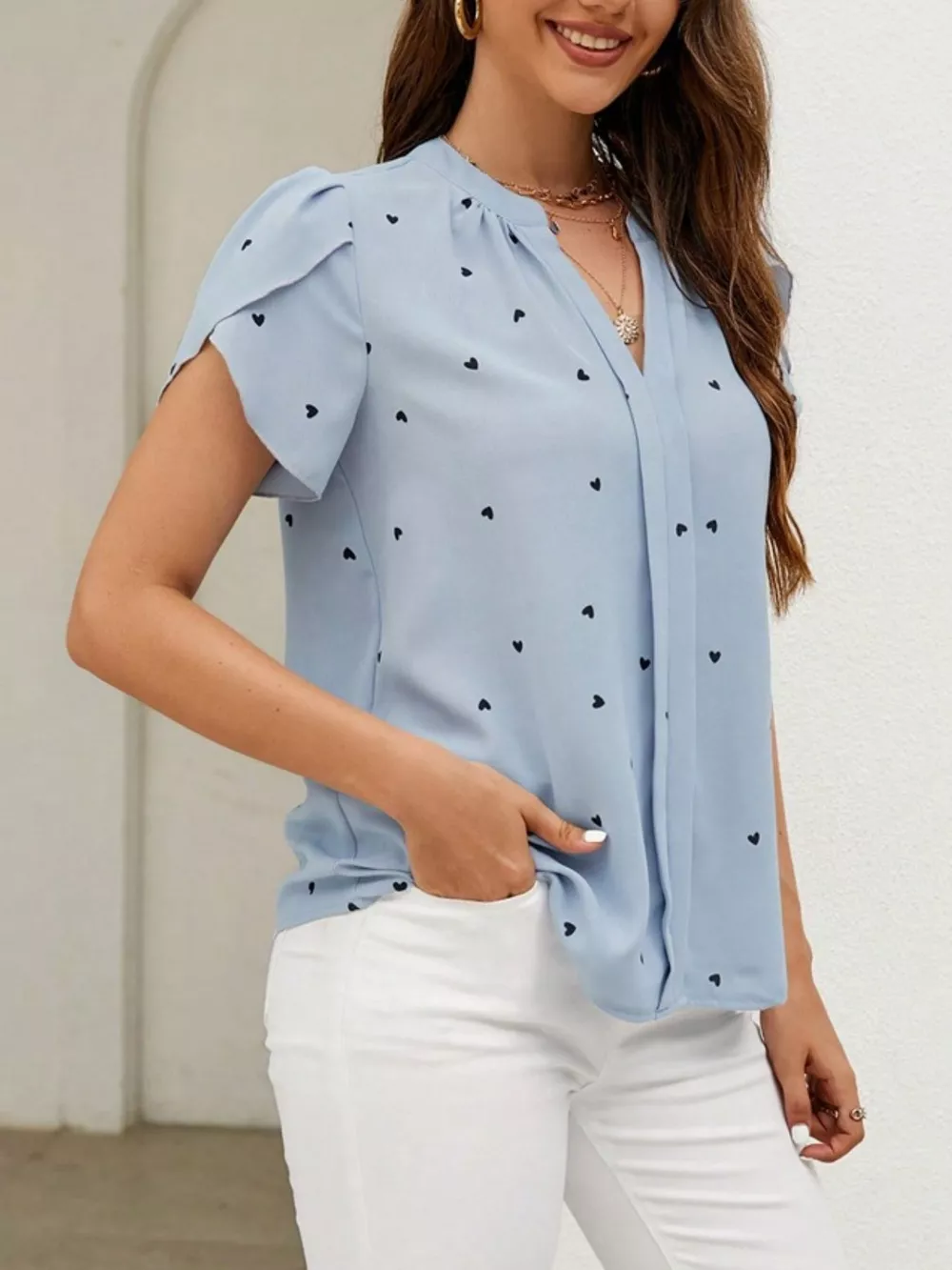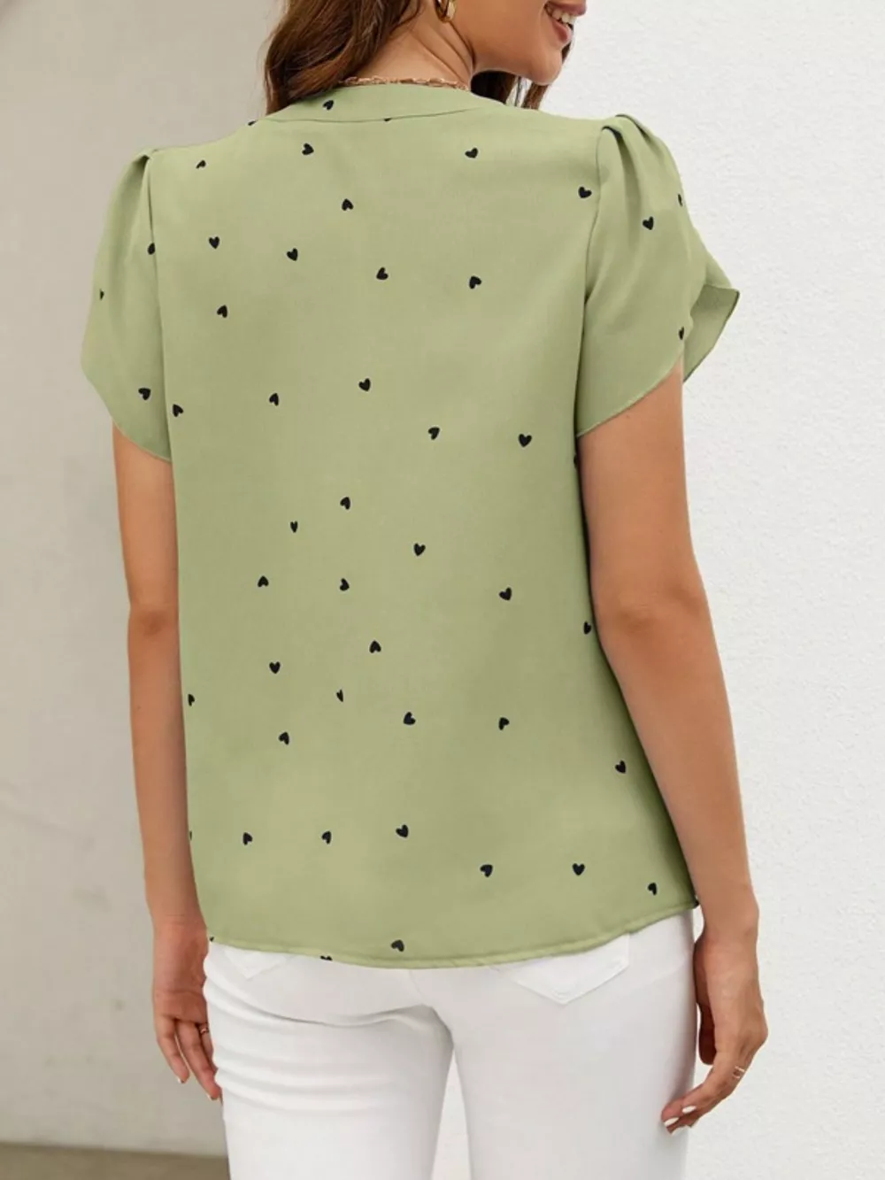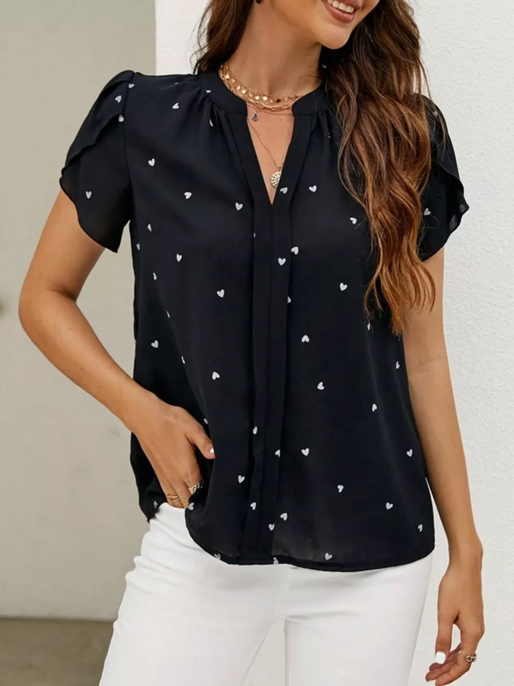 Heart Print Petal Sleeve Blouse