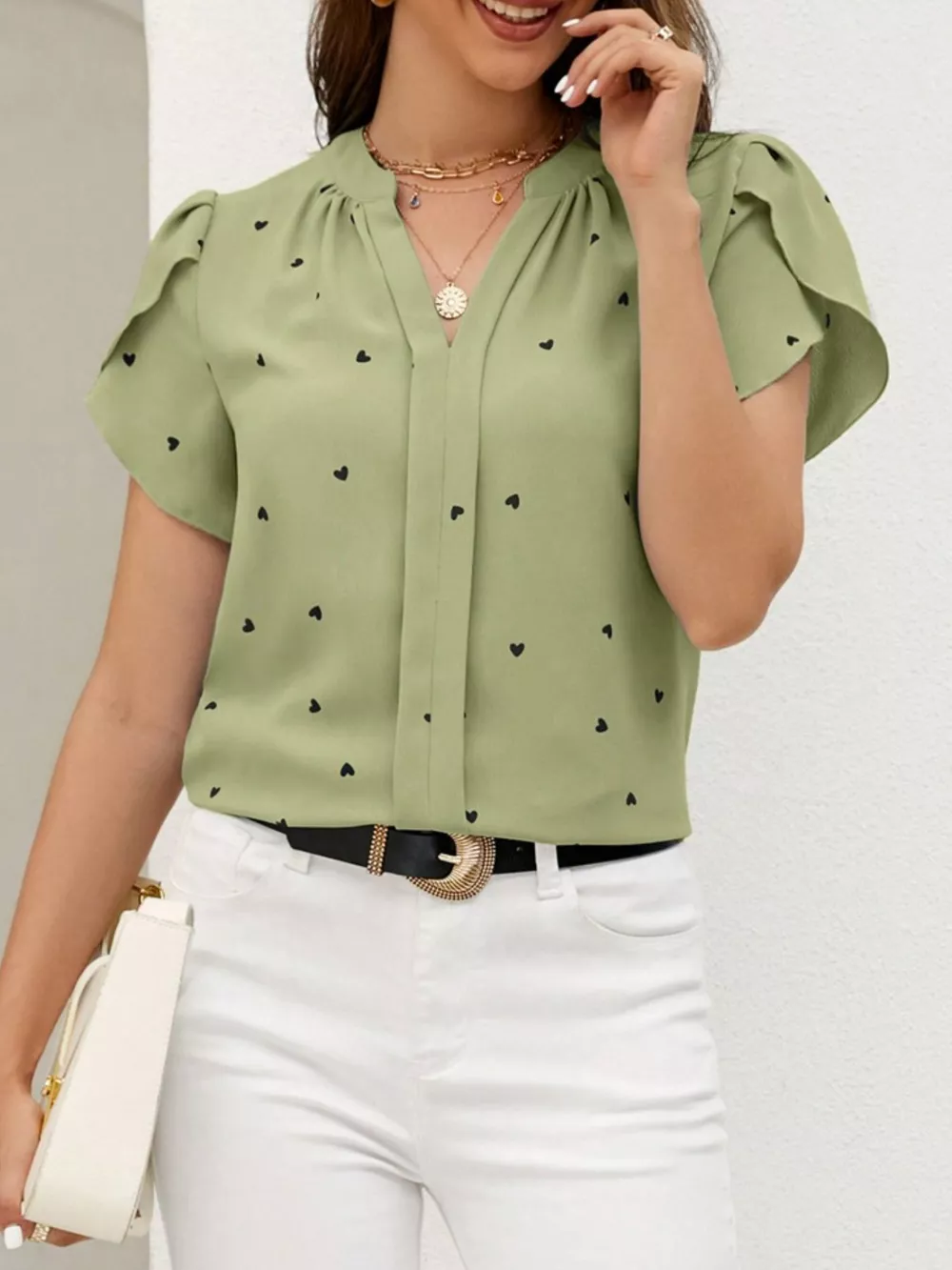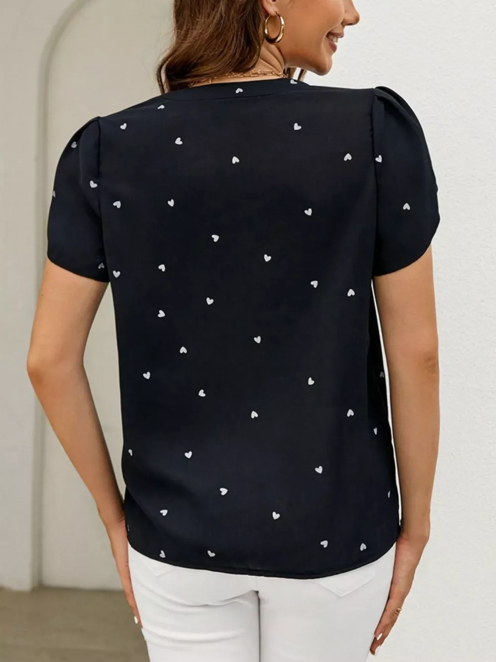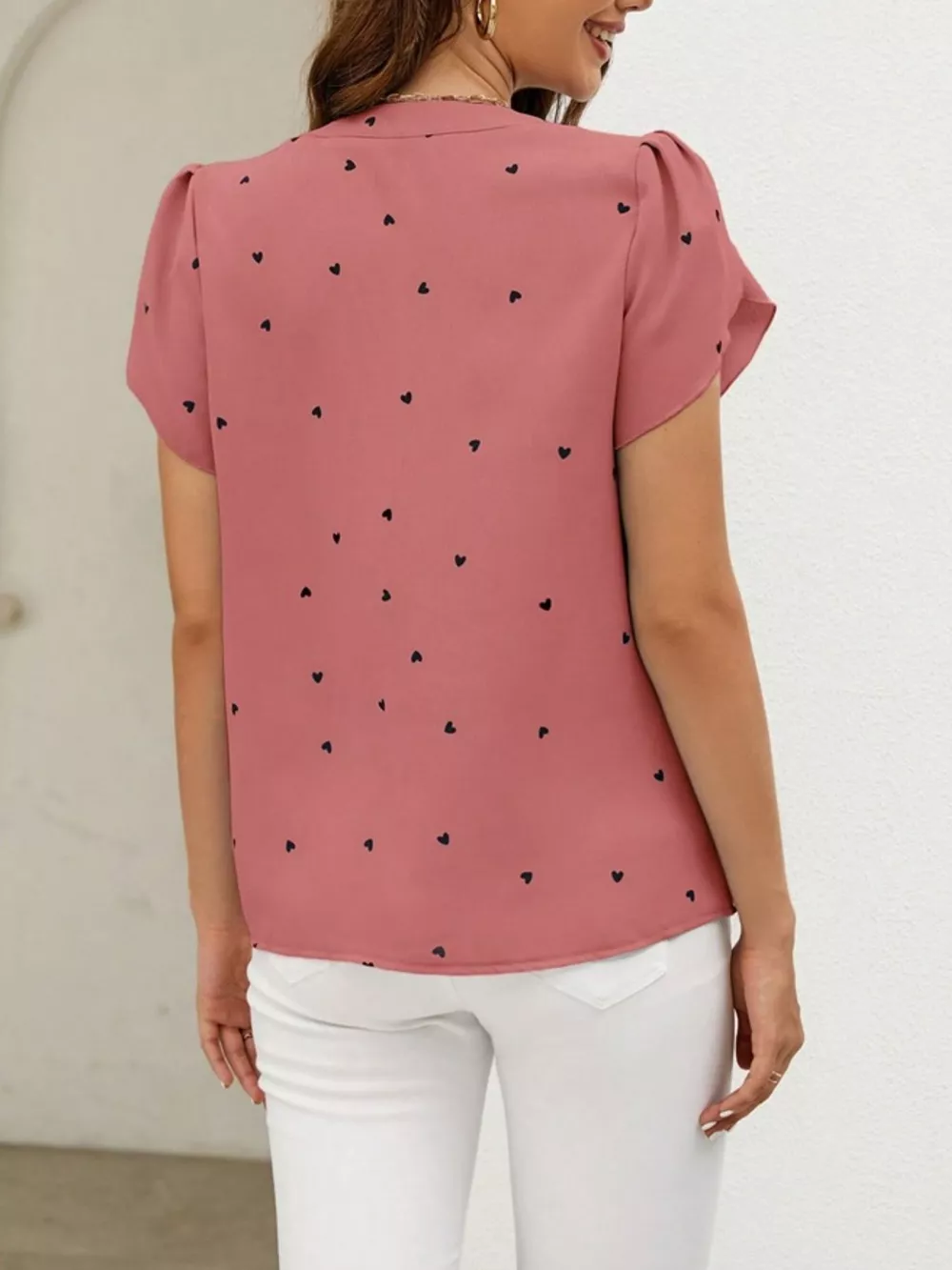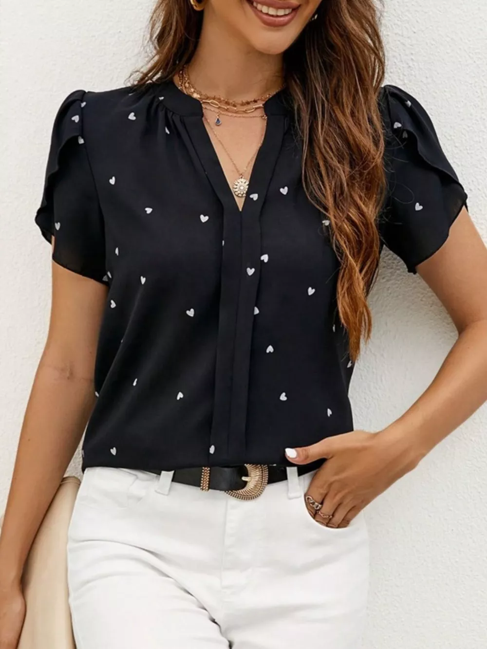 Heart Print Petal Sleeve Blouse