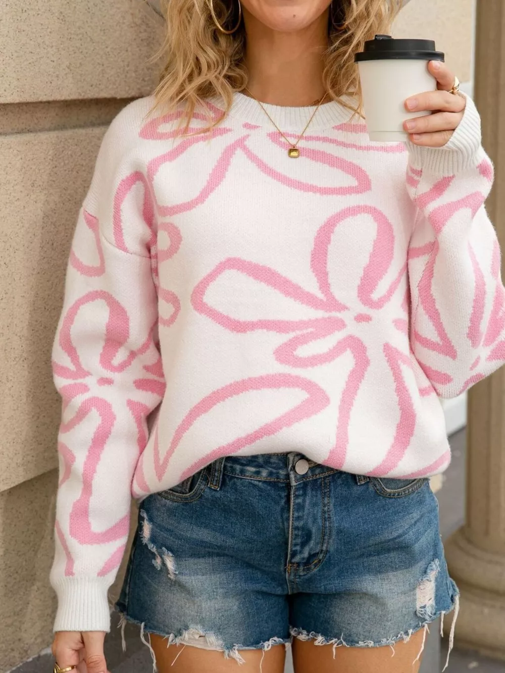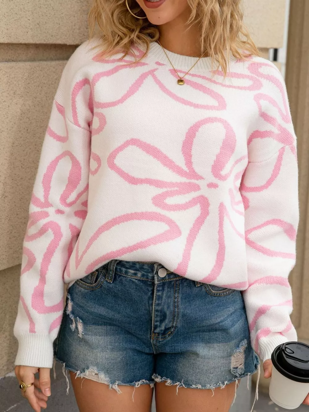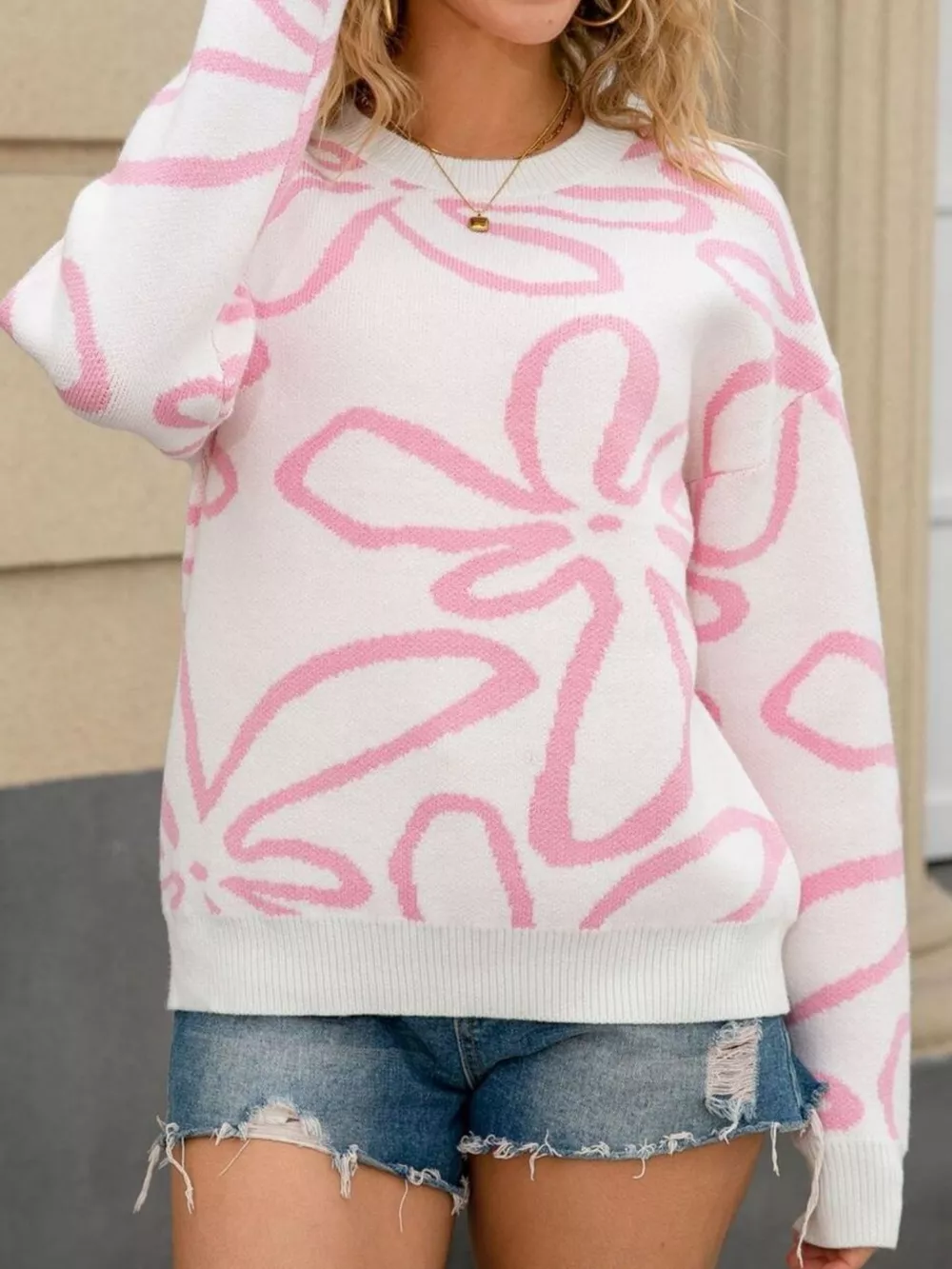 Flower Crew Neck Long Sleeve Sweater