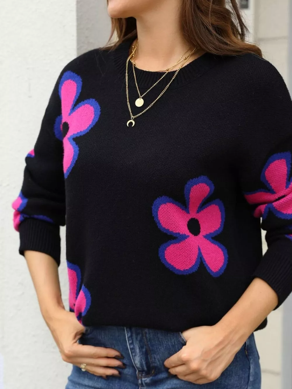 Floral Crew Neck Sweater