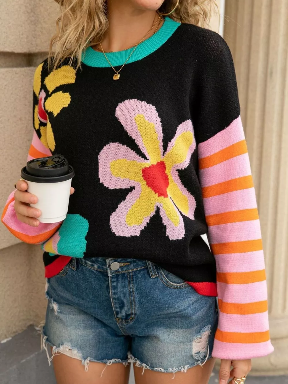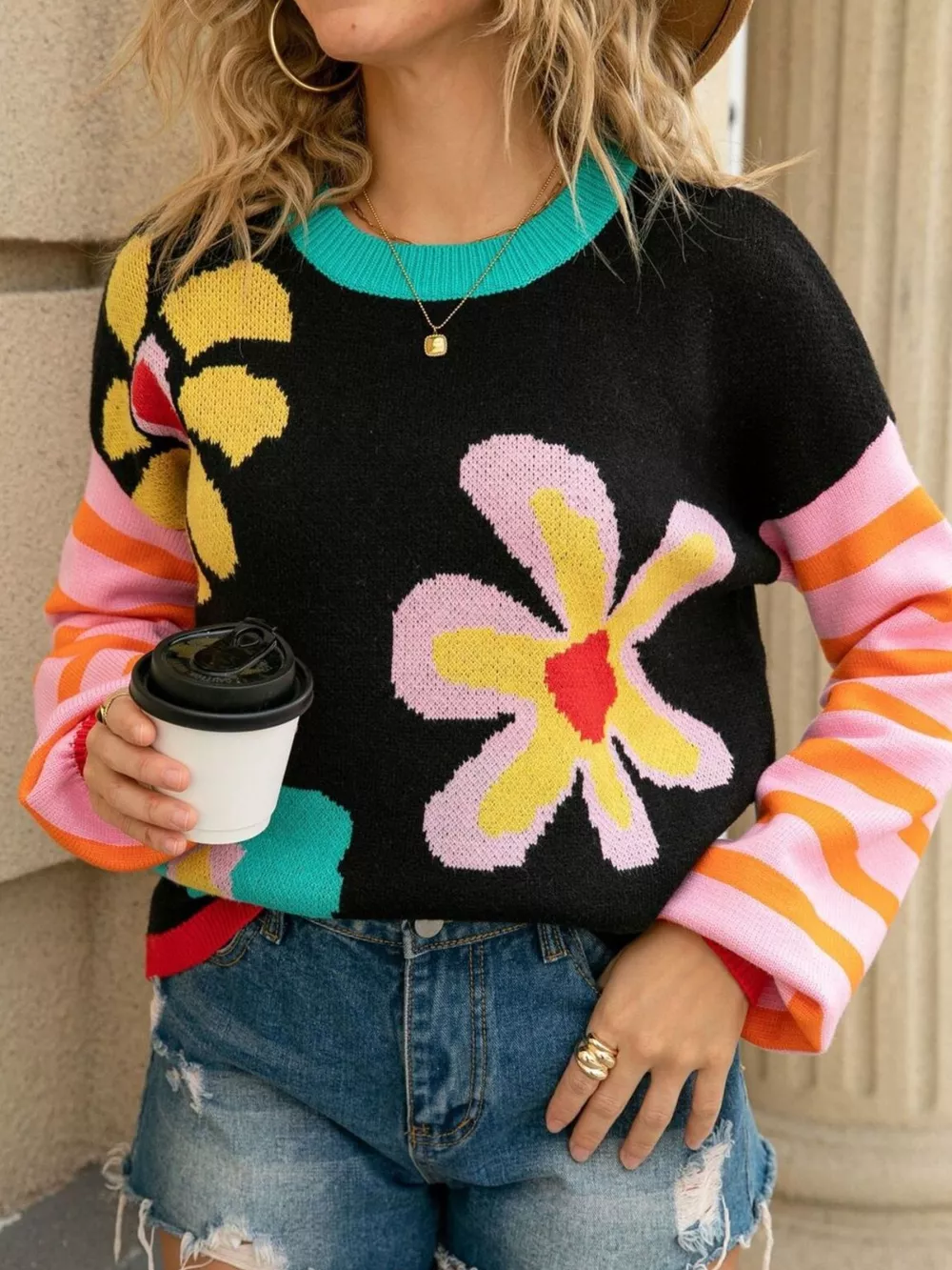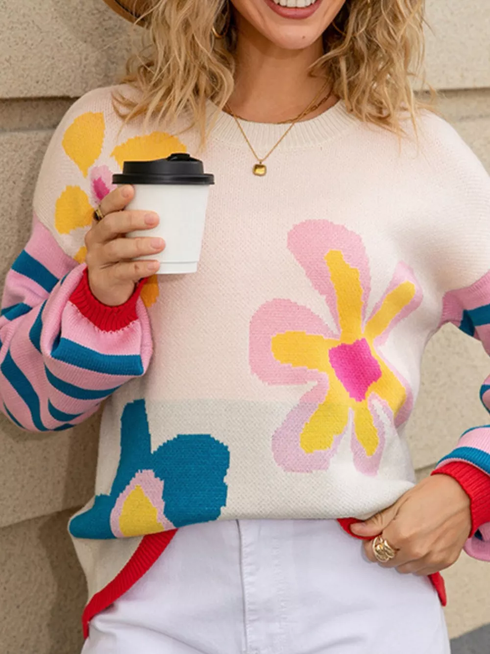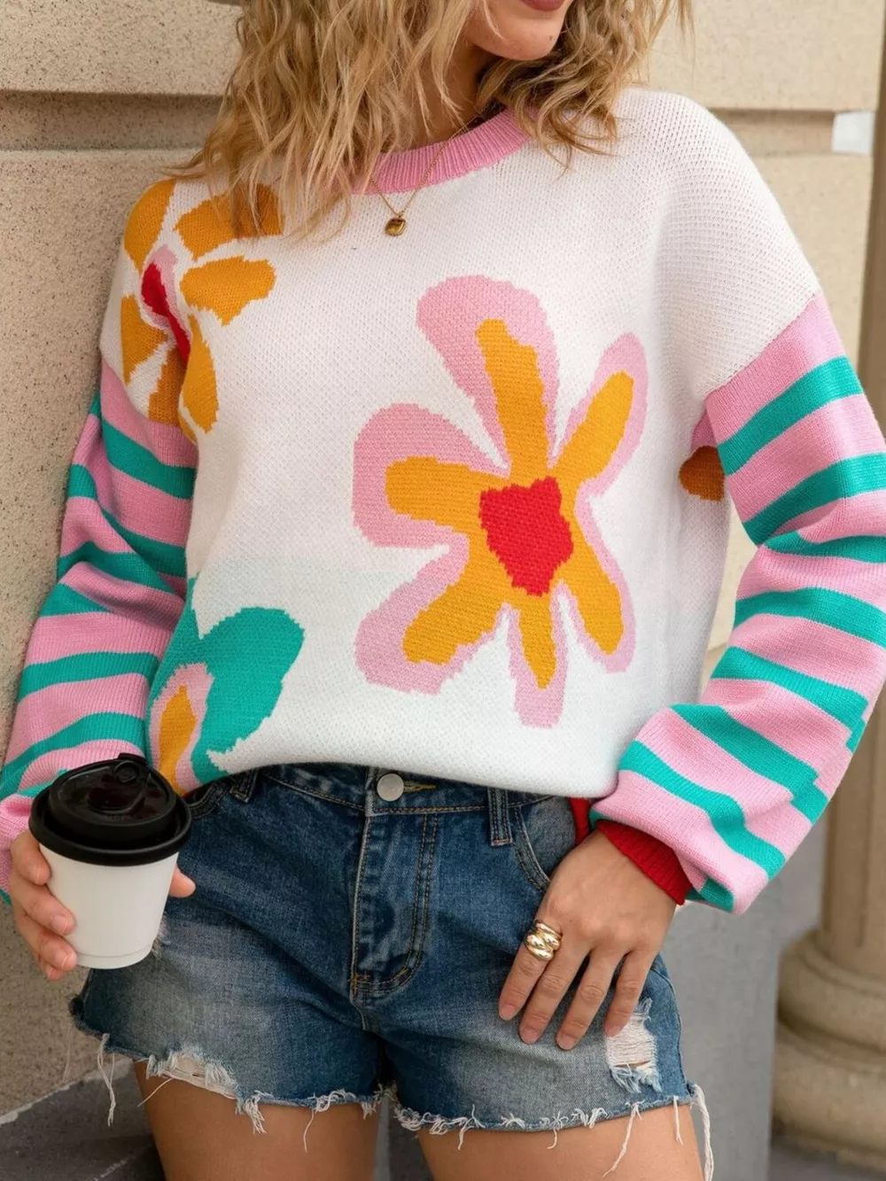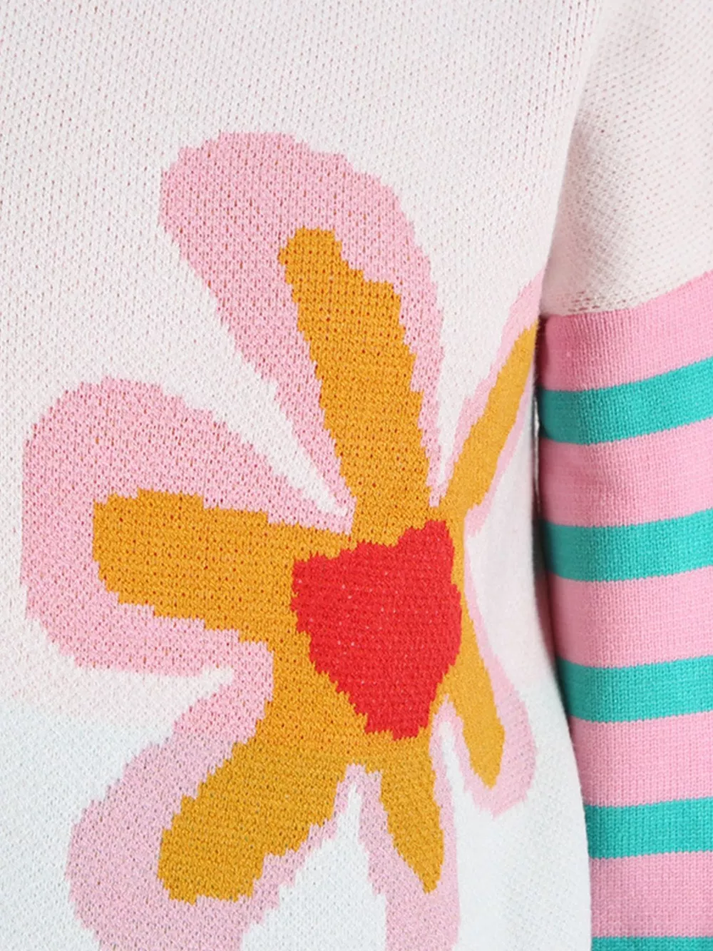 Floral Striped Crew Neck Sweater