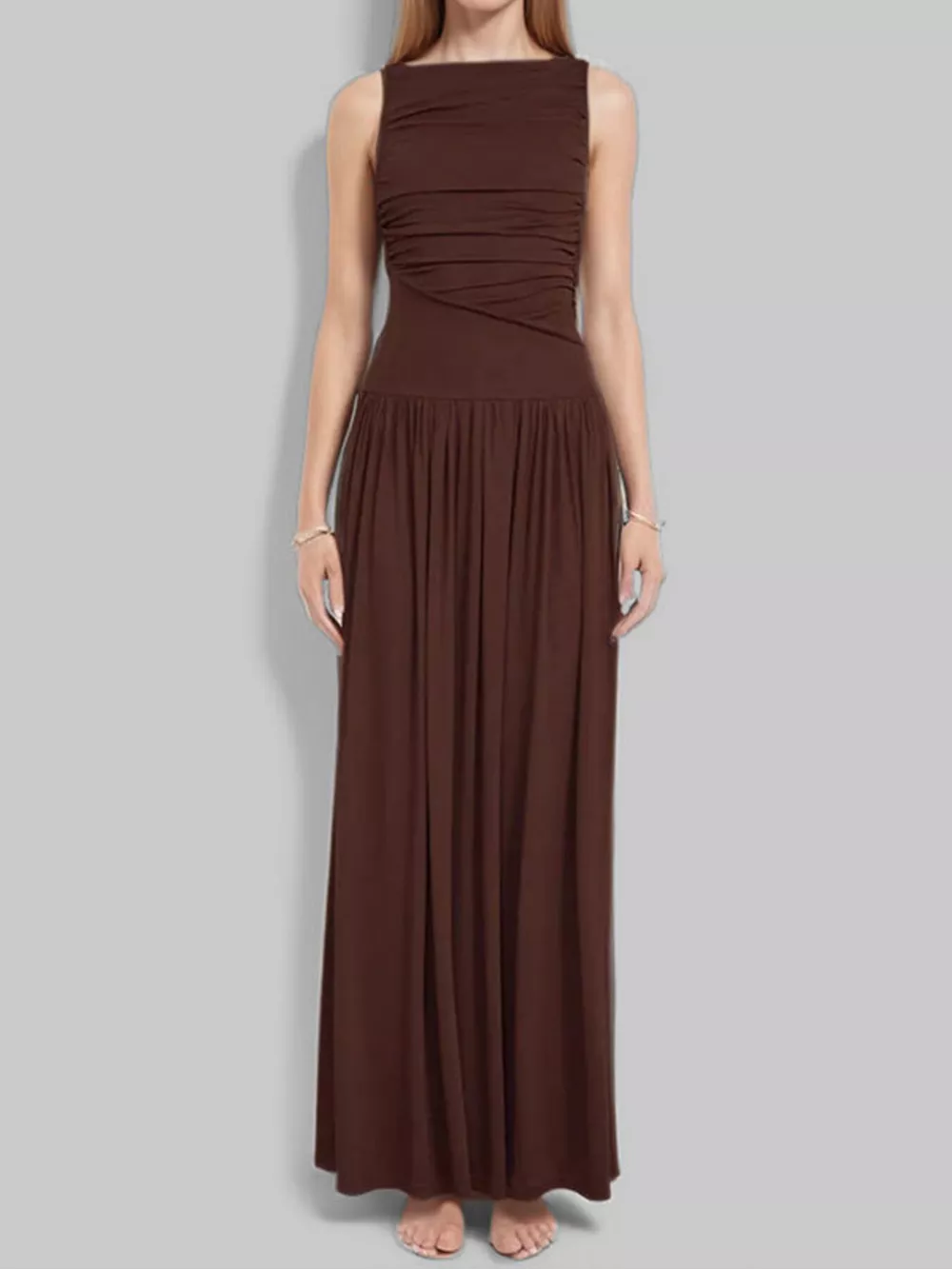 Full Size Ruched Sleeveless Maxi Dress Plus Size