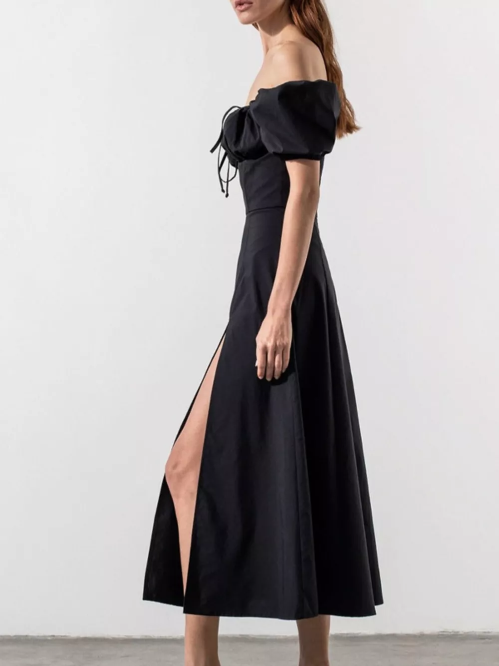 Full Size Slit Short Sleeve Midi Dress Plus Size