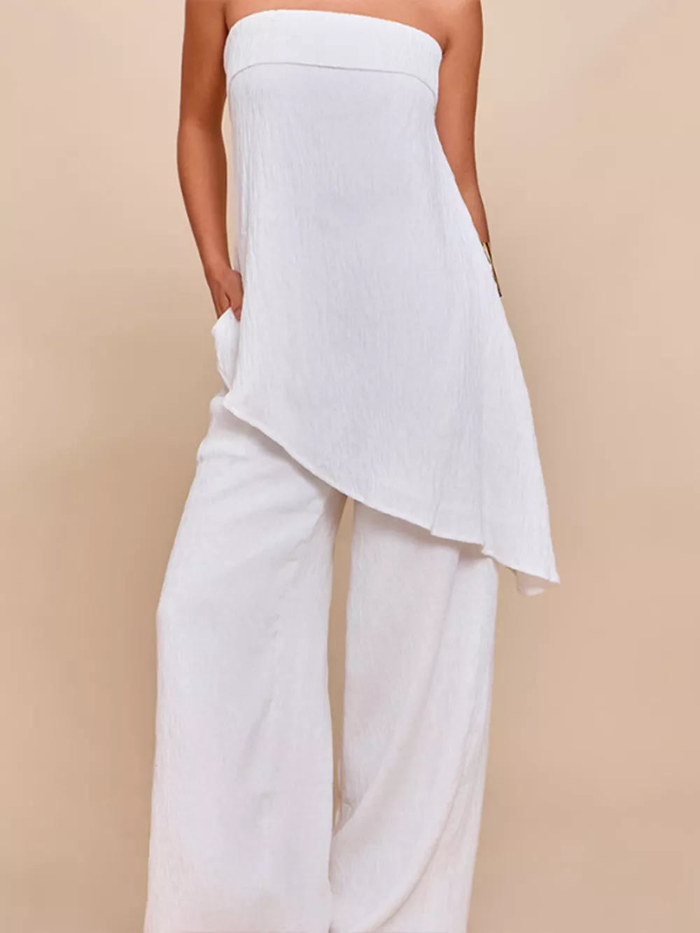 Full Size Asymmetrical Hem Tube Top and Pants Set Plus Size