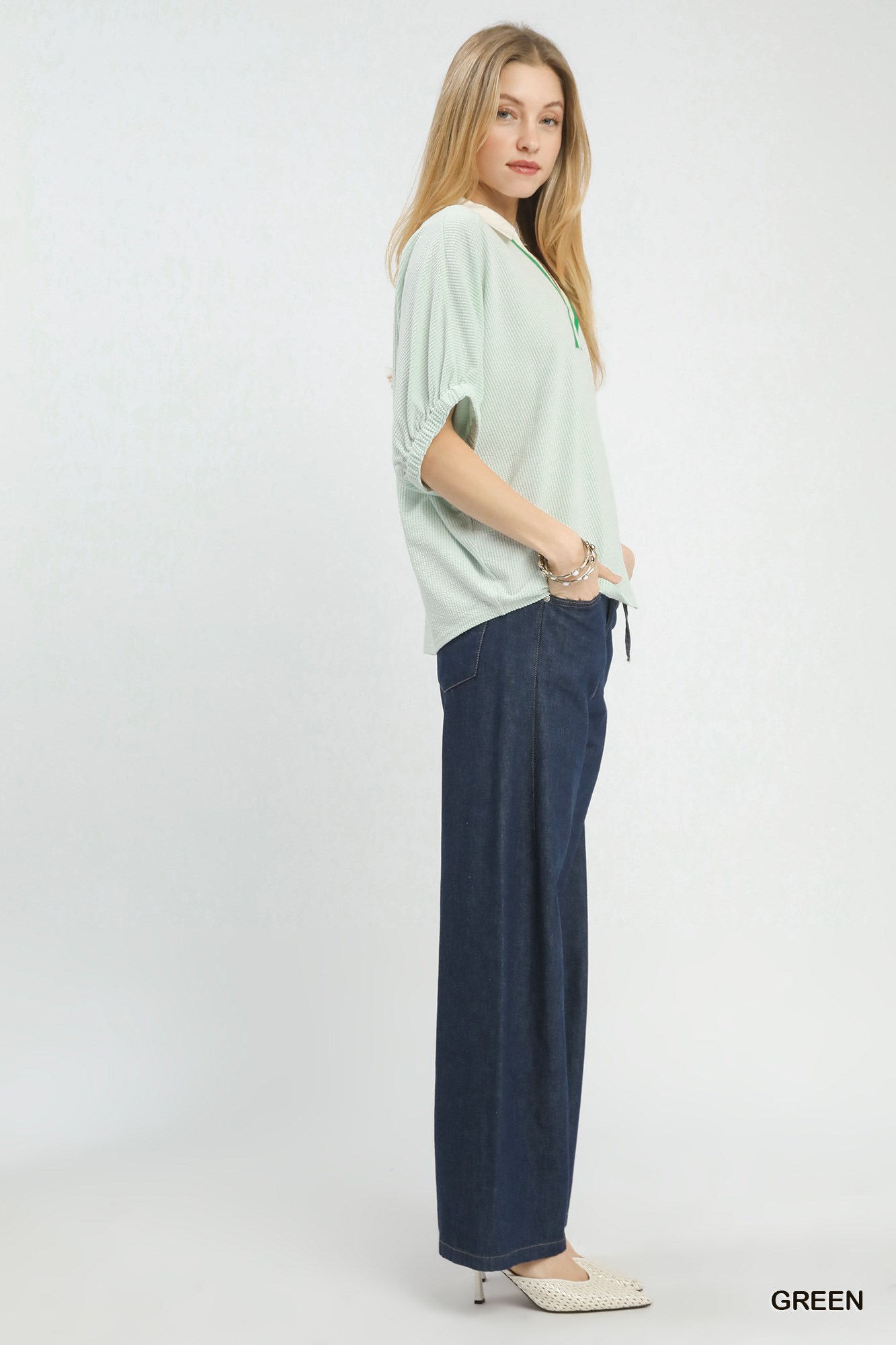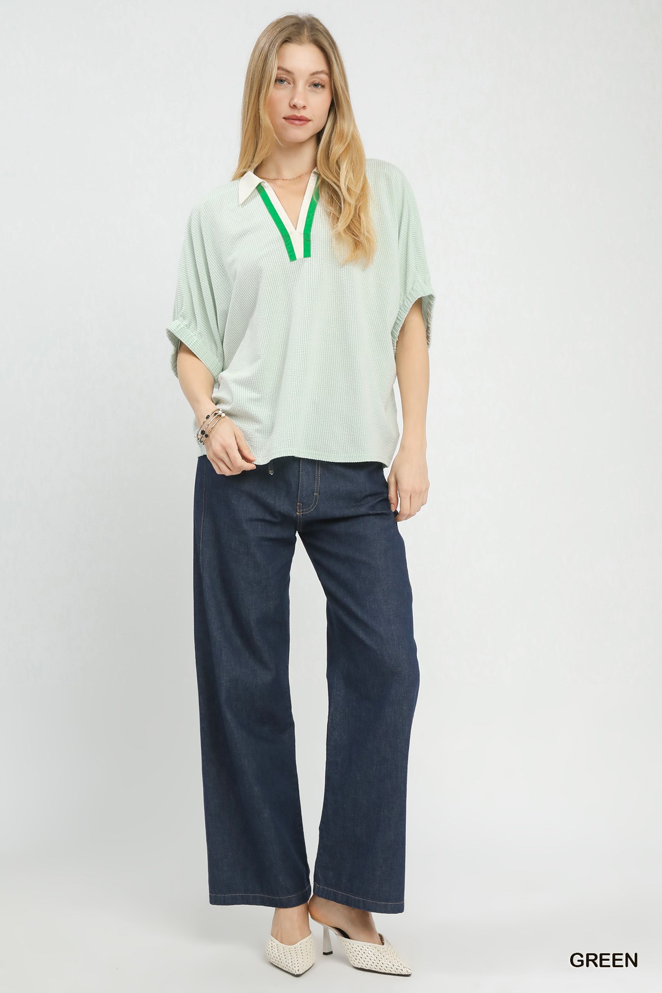 Umgee Contrast Collar V-Neck Top