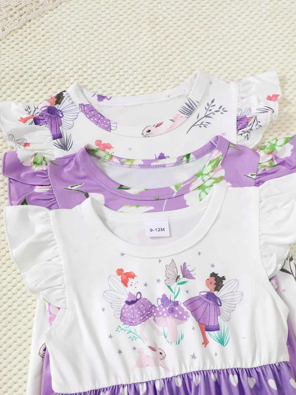 3-Piece Children's Printed Ruffle Sleeve Baby Dress