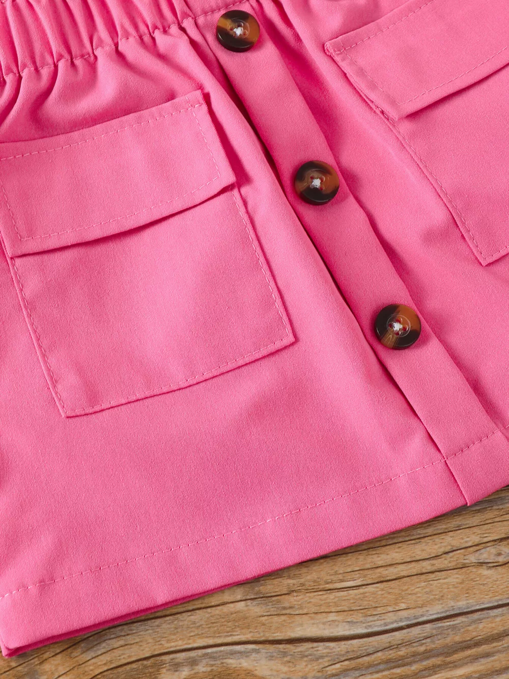 - Features:Buttoned,Pocketed,Decorative Button,Ruffled