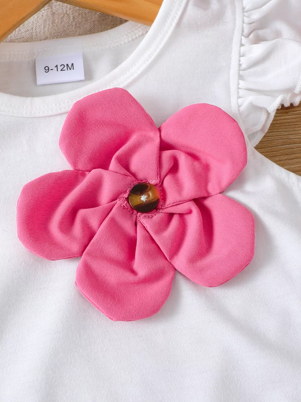 Children's Floral Applique Ruffle Sleeve Top & Skirt Set