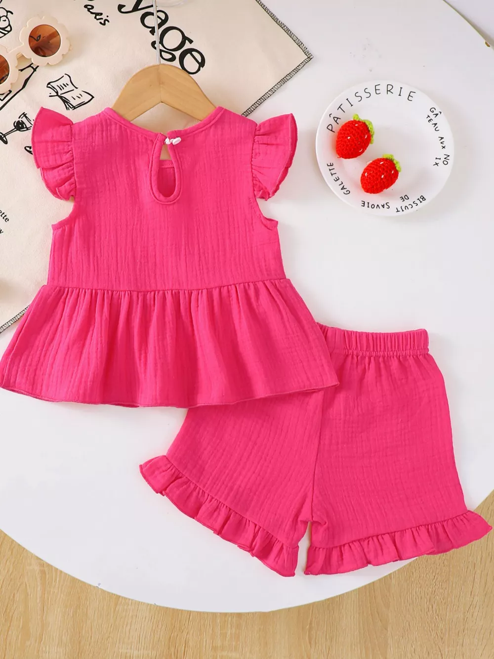 Children's Ruffle Trim Bowknot Top & Shorts Set