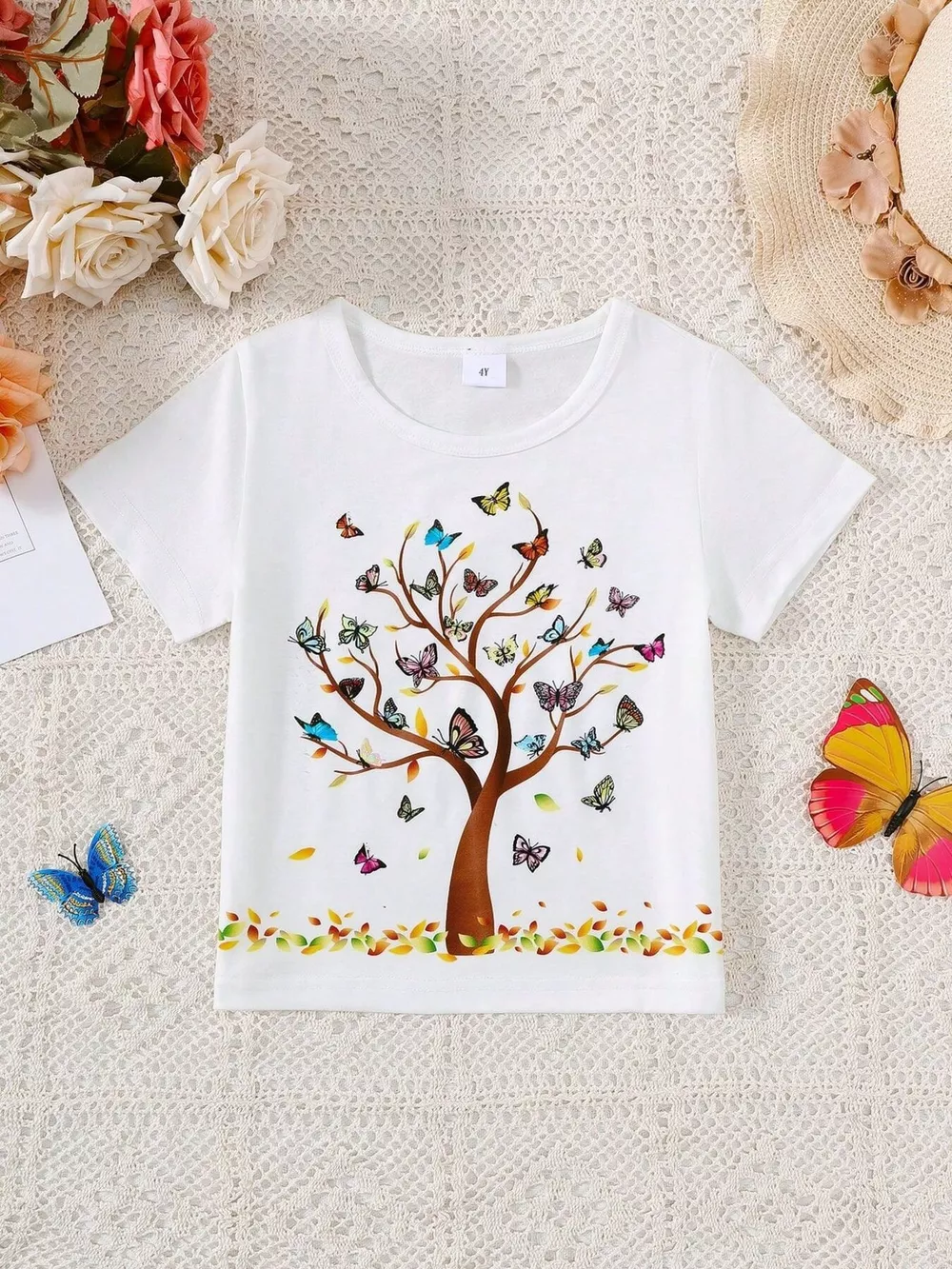 Children's Butterfly Tree Graphic Casual T-Shirt