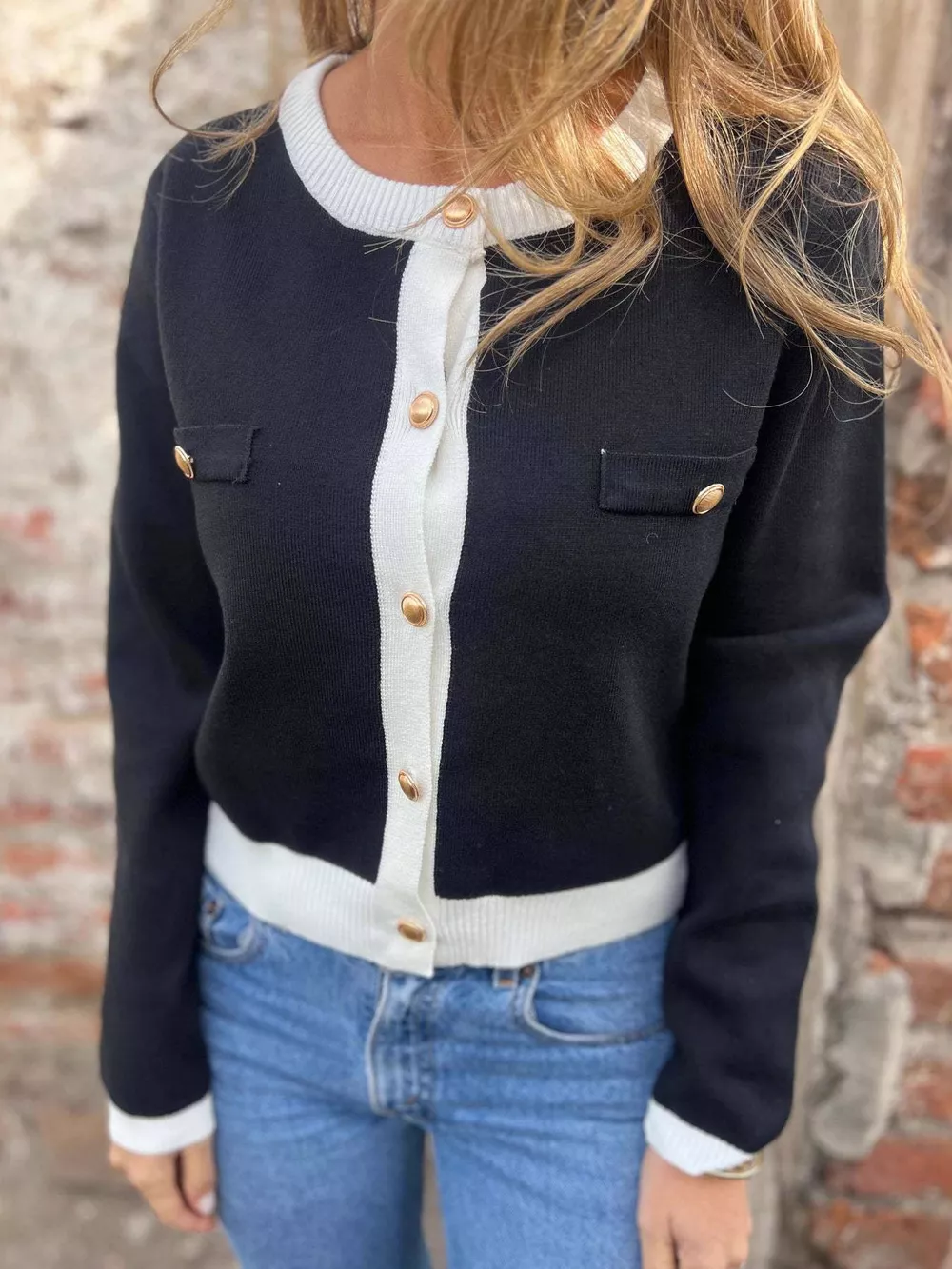 Contrast Trim Button Up Cardigan