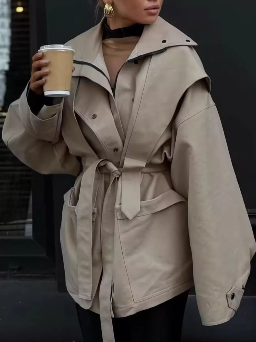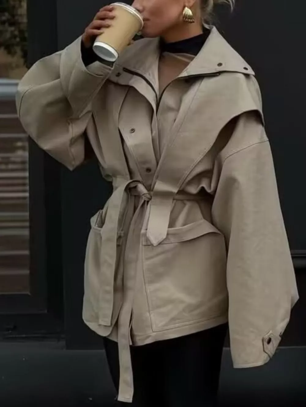 Tie Waist Snap Down Trench Coat