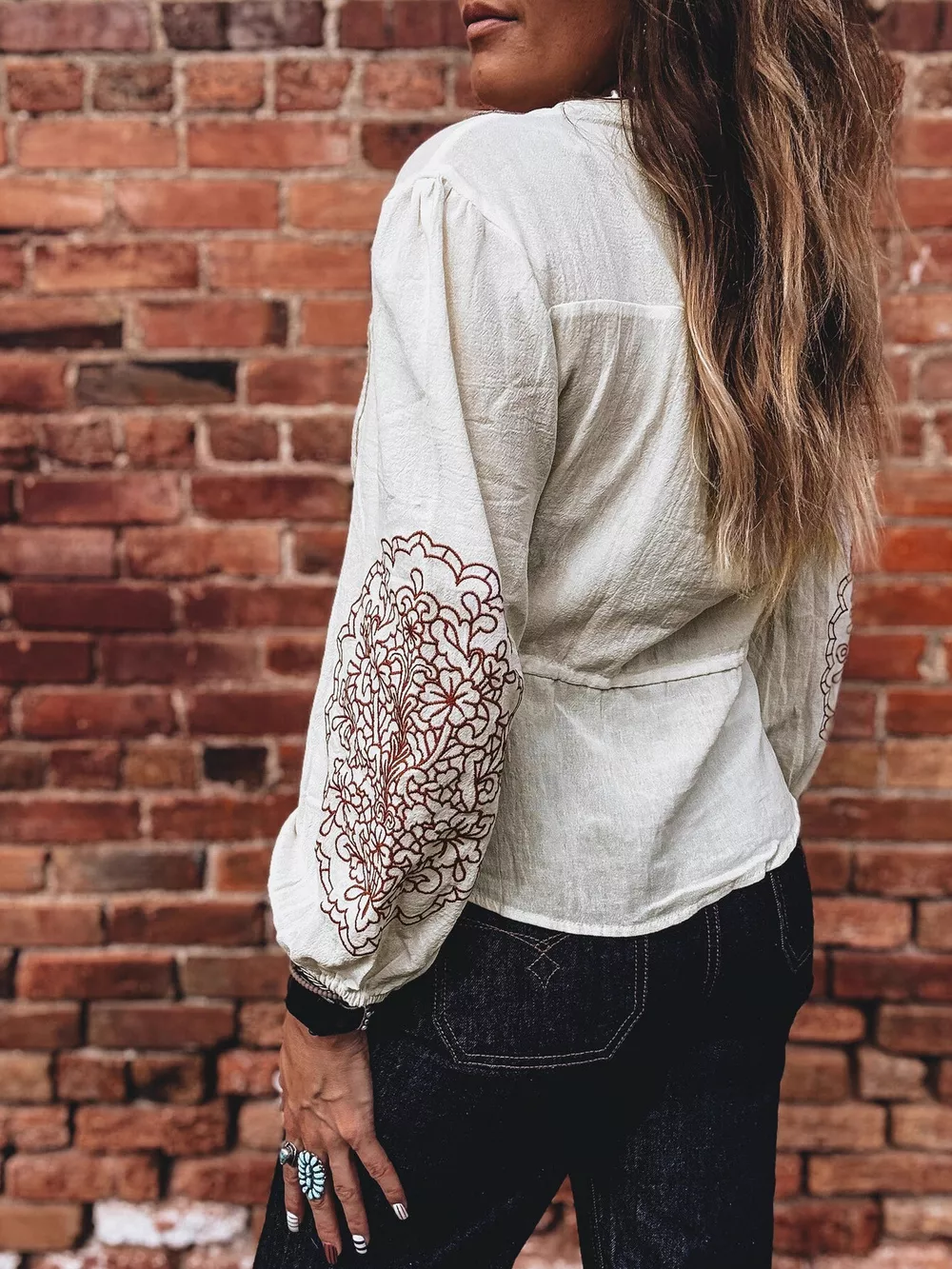 Embroidered Drawstring Waist Blouse