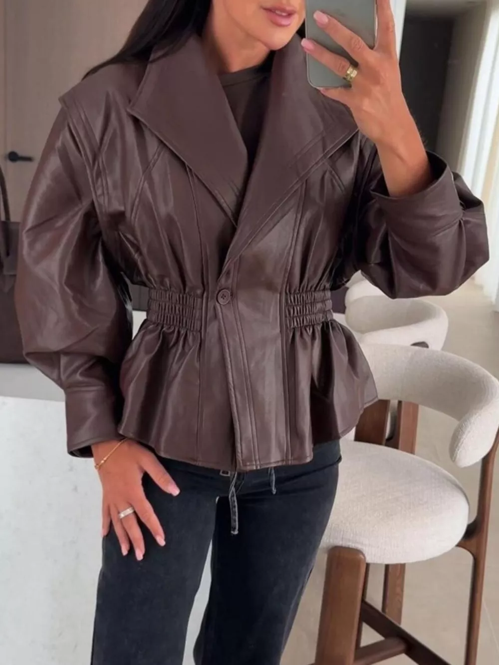 Peplum Waist Leather Jacket
