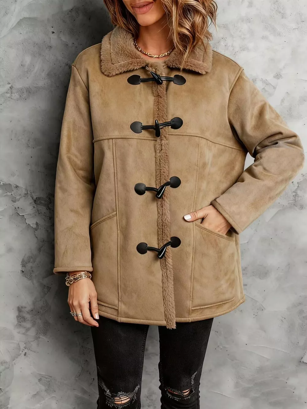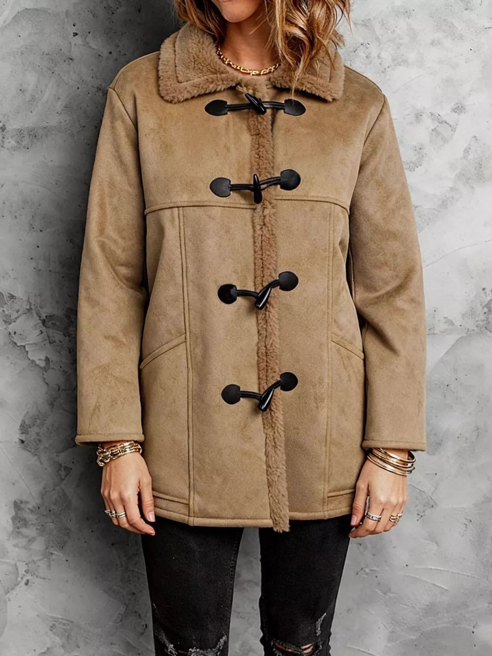 Faux Suede Sherpa Lined Toggle Coat