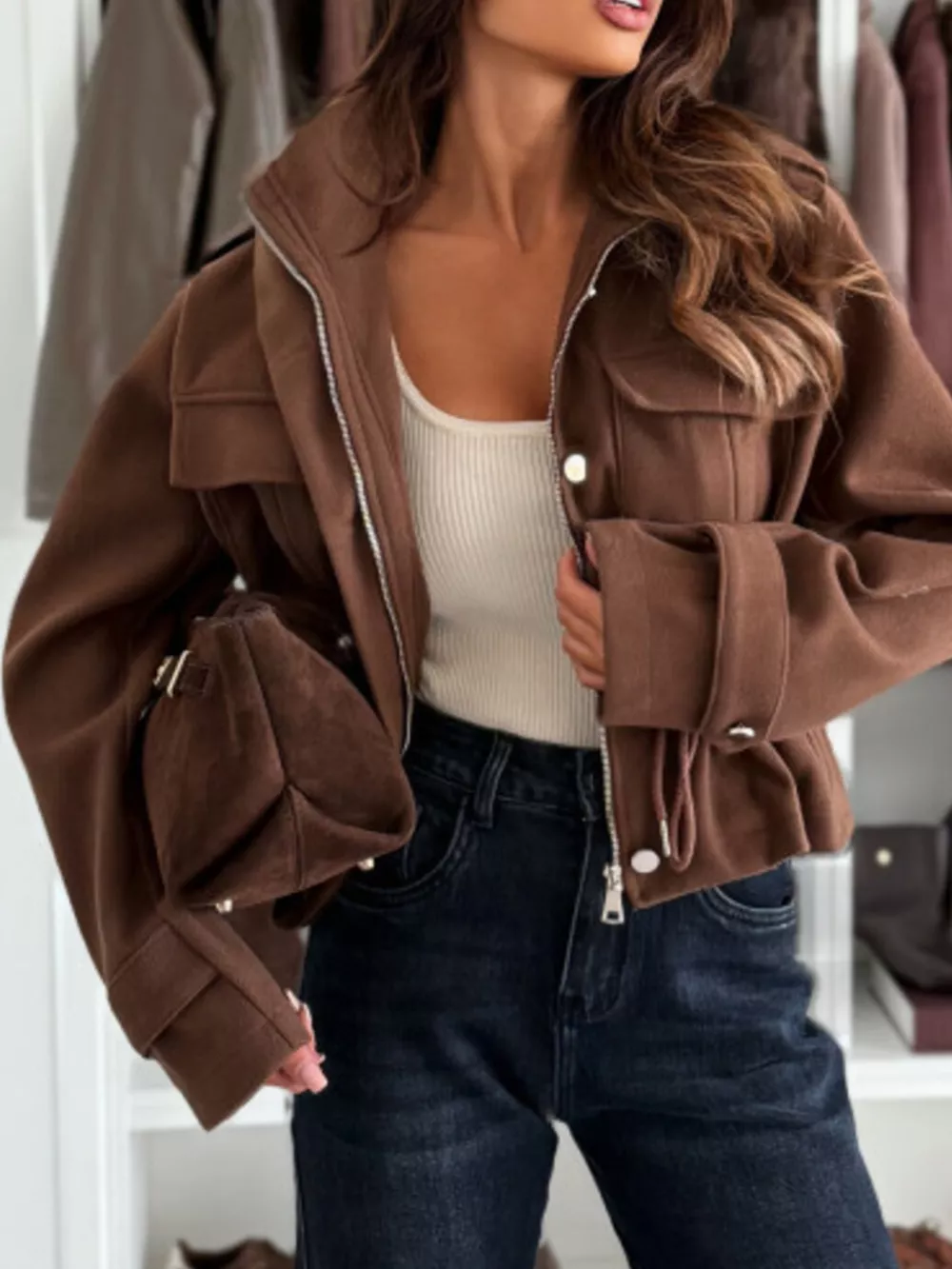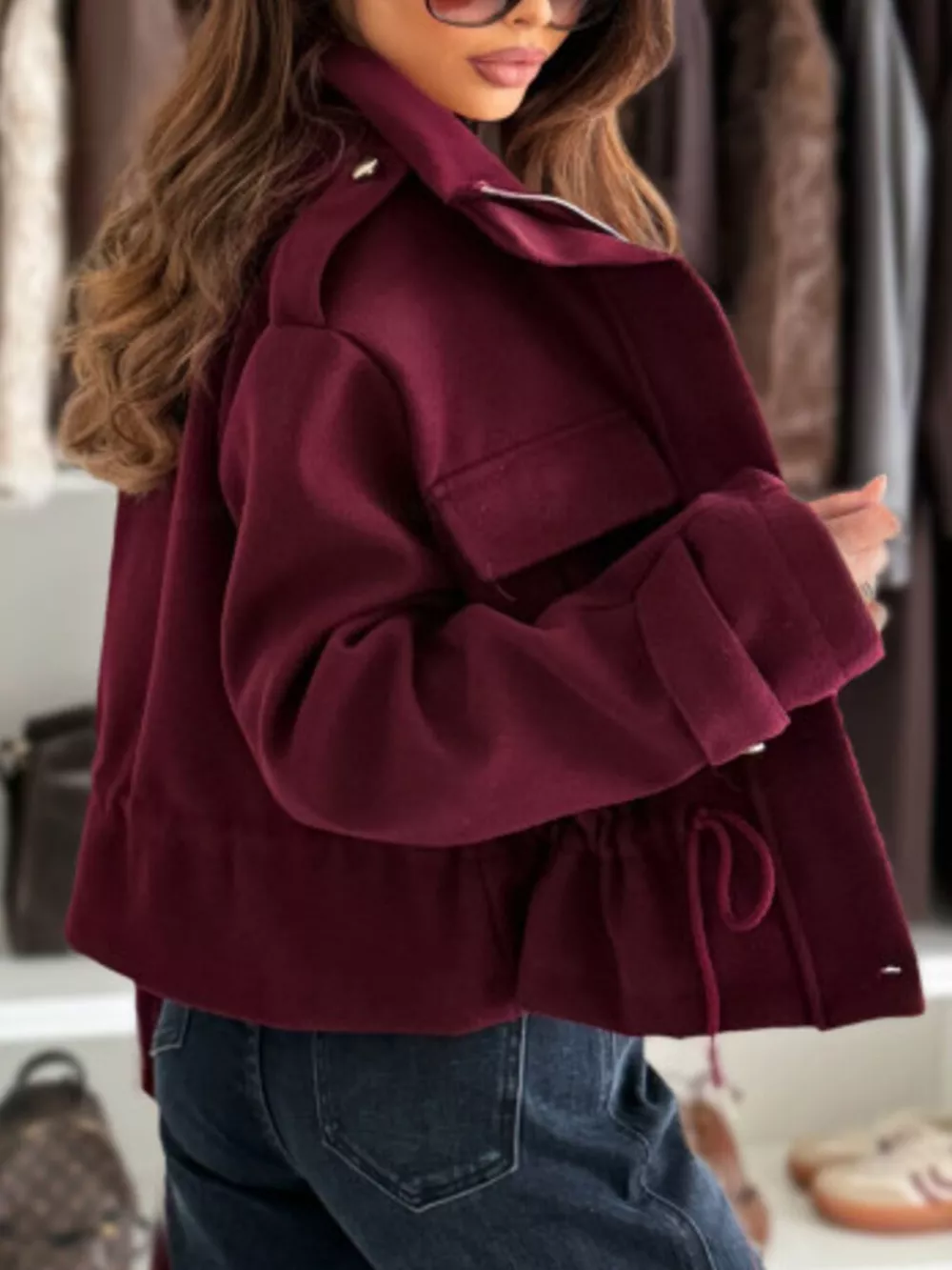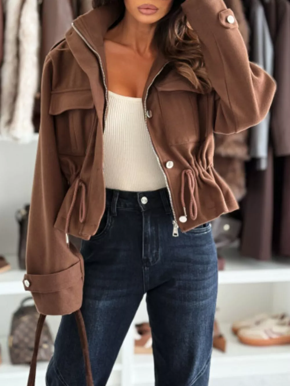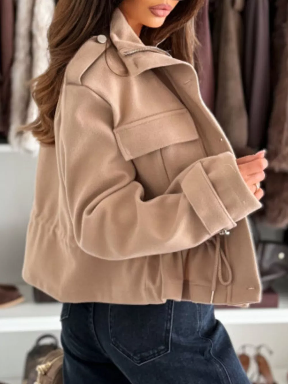 Drawstring Button-Up Casual Jacket