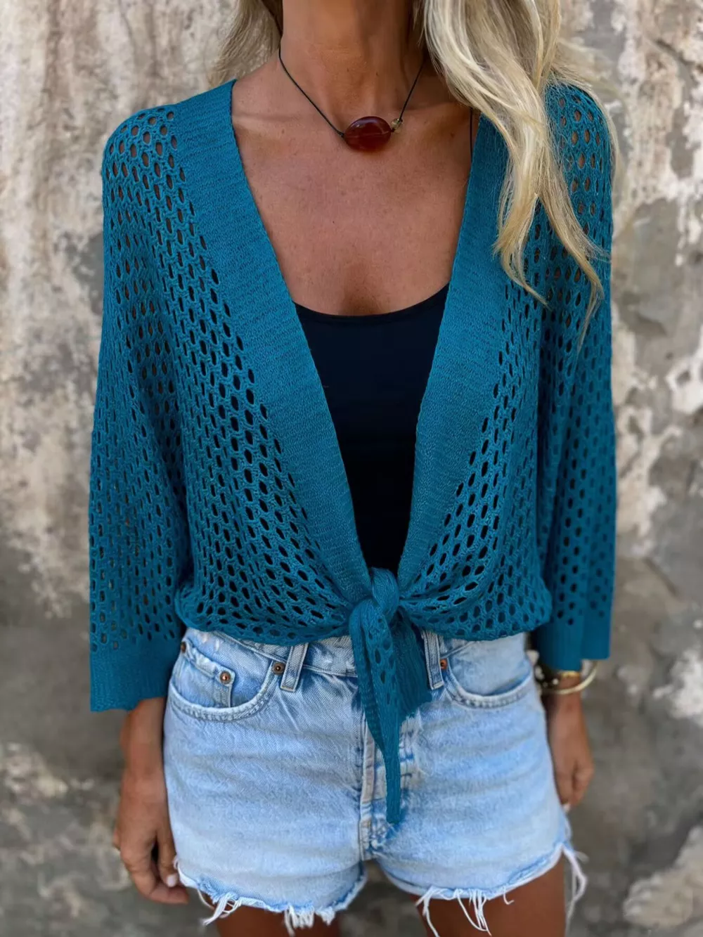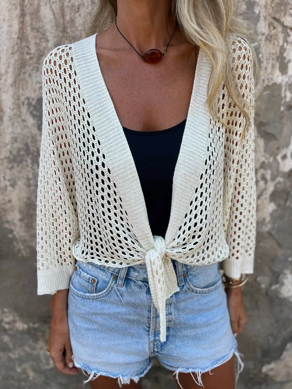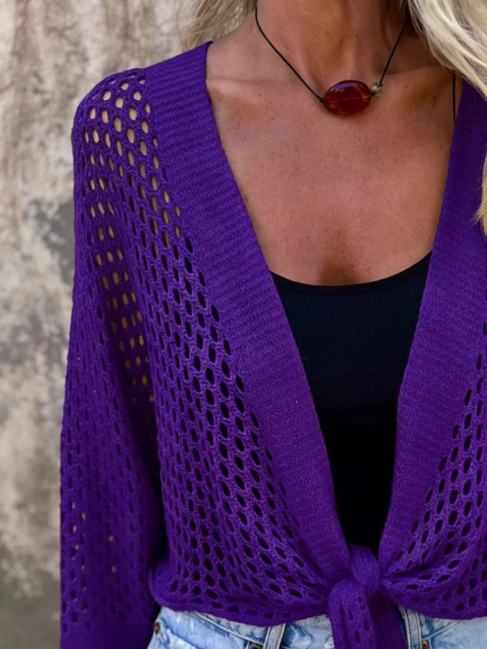 Tie-Front Crochet Knit Cover Up