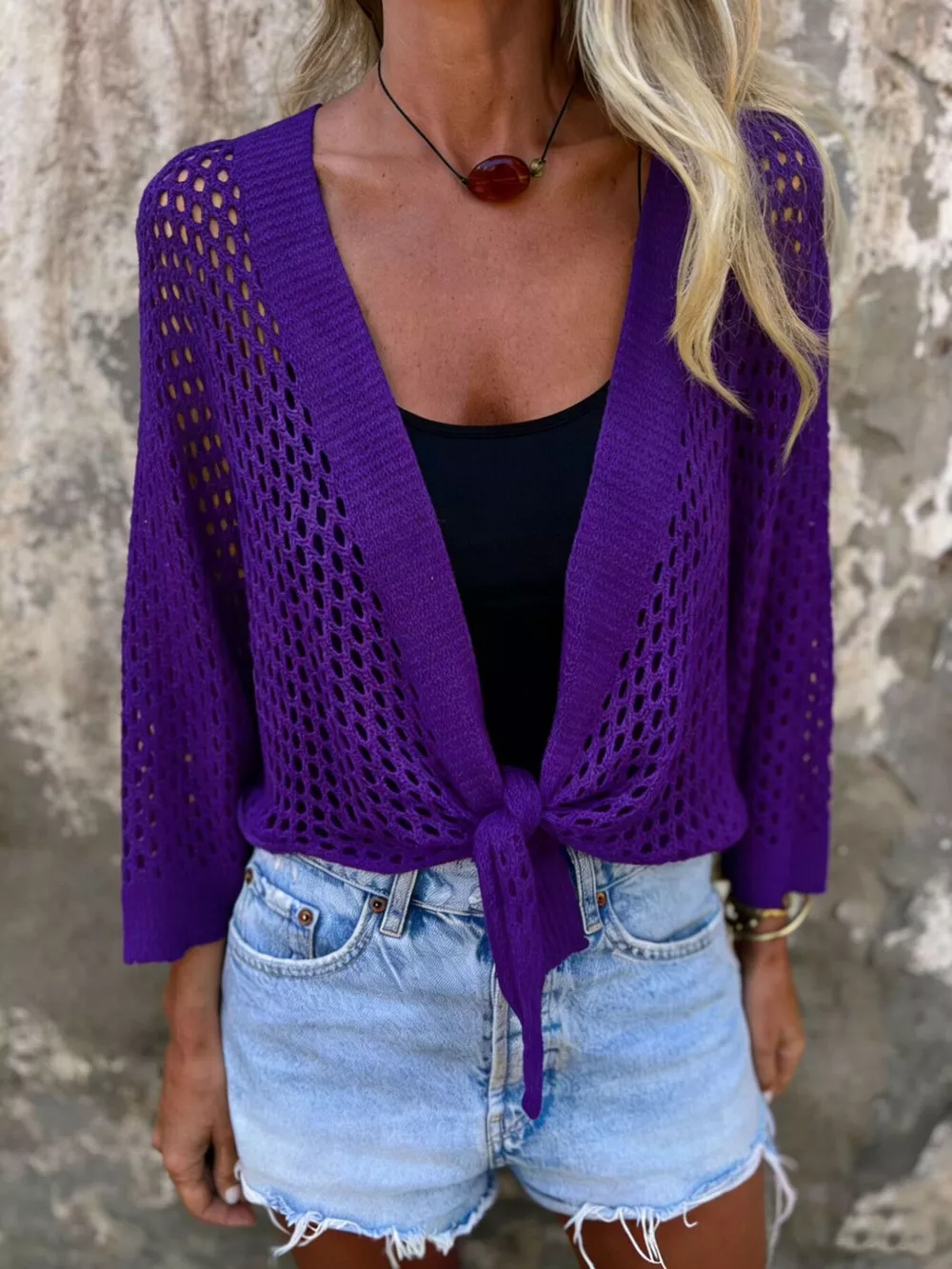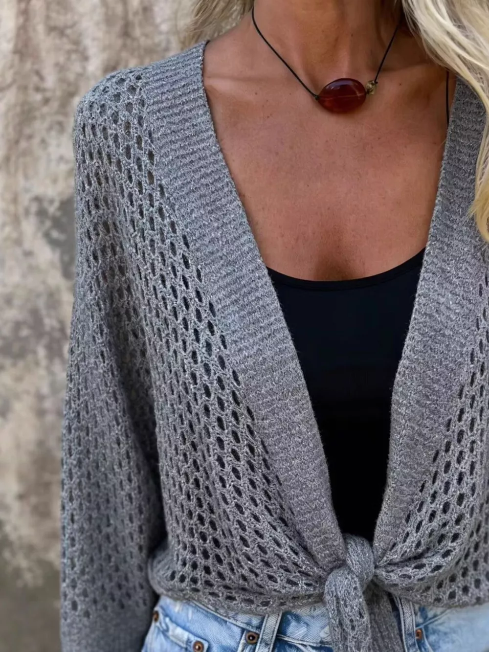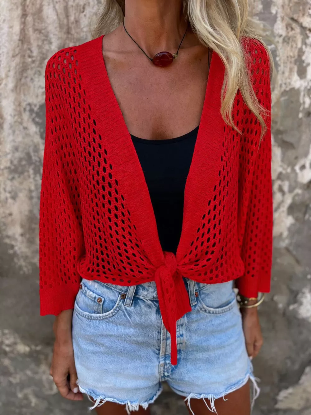 Tie-Front Crochet Knit Cover Up