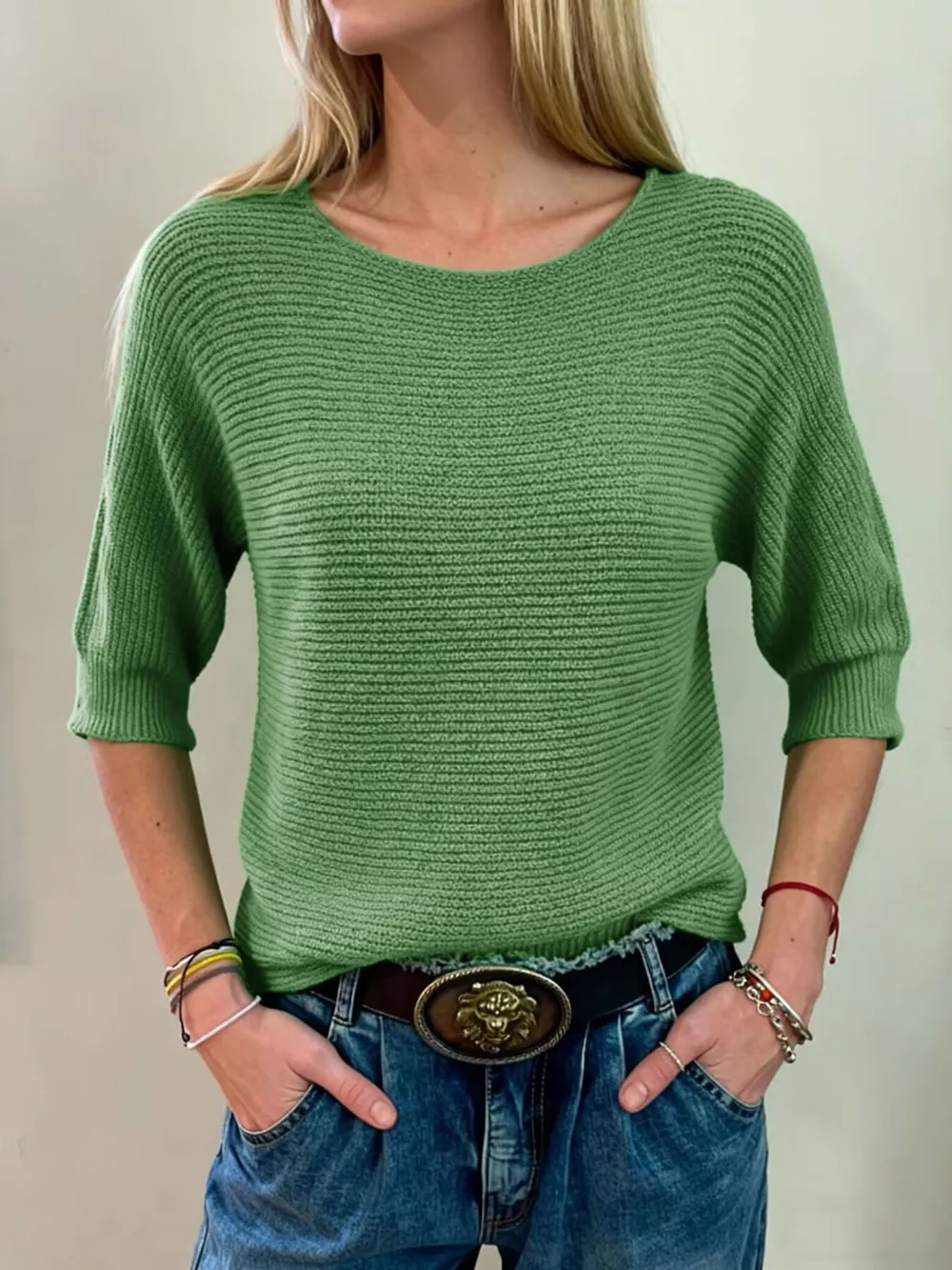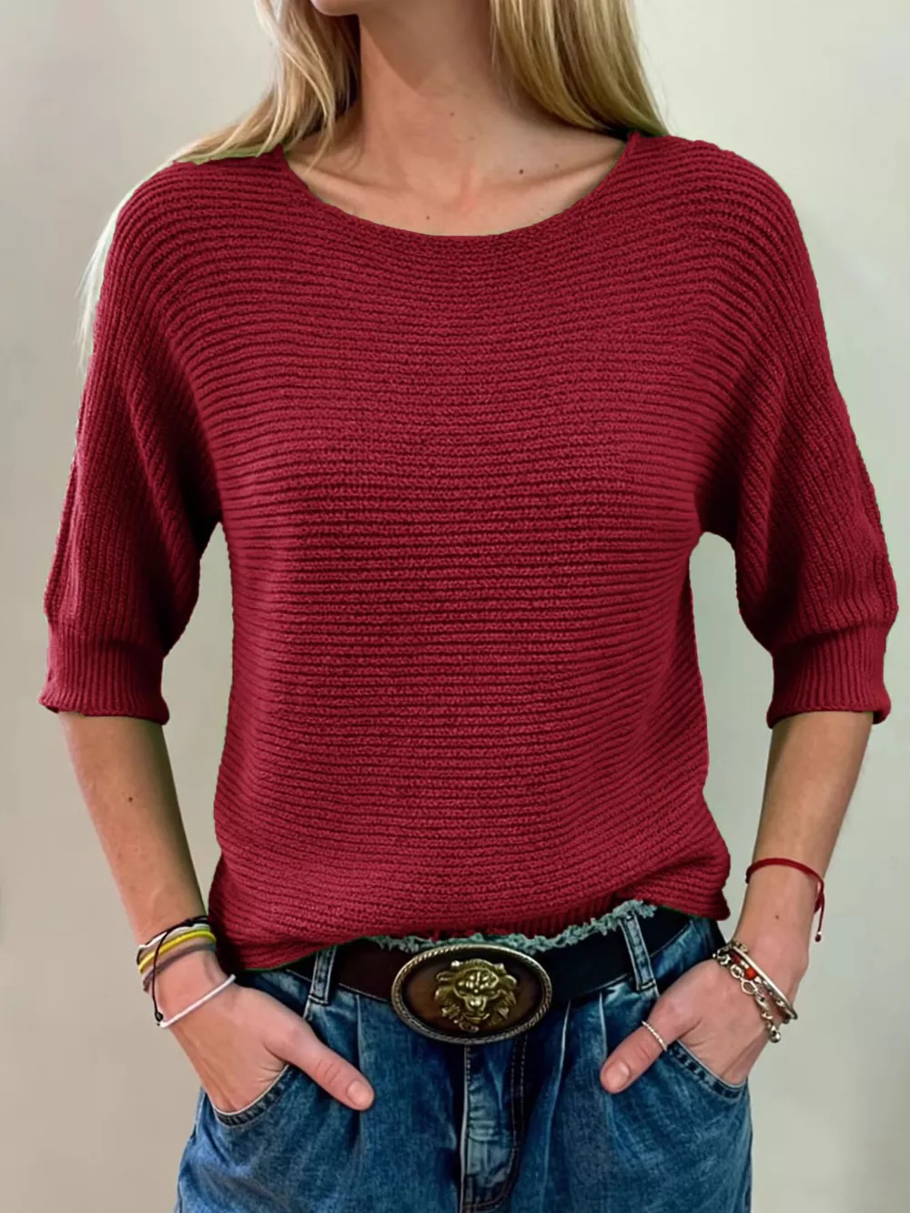 Full Size Ribbed Knit Round Neck Sweater Plus Size